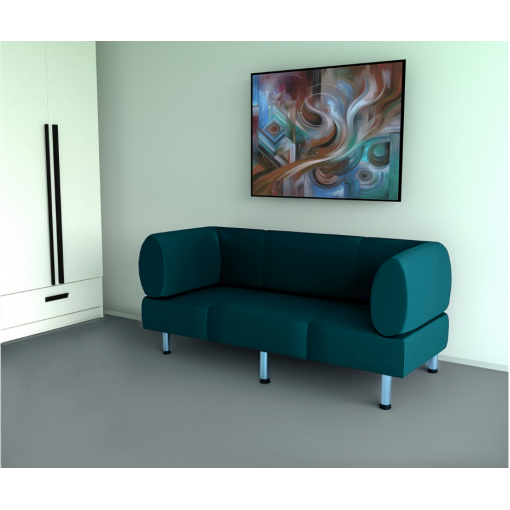 Диван офісний Tobi Sho Бенно-2 з підлокітниками та прямою ногою 2000х720х750 шкірзам Морська хвиля 2215