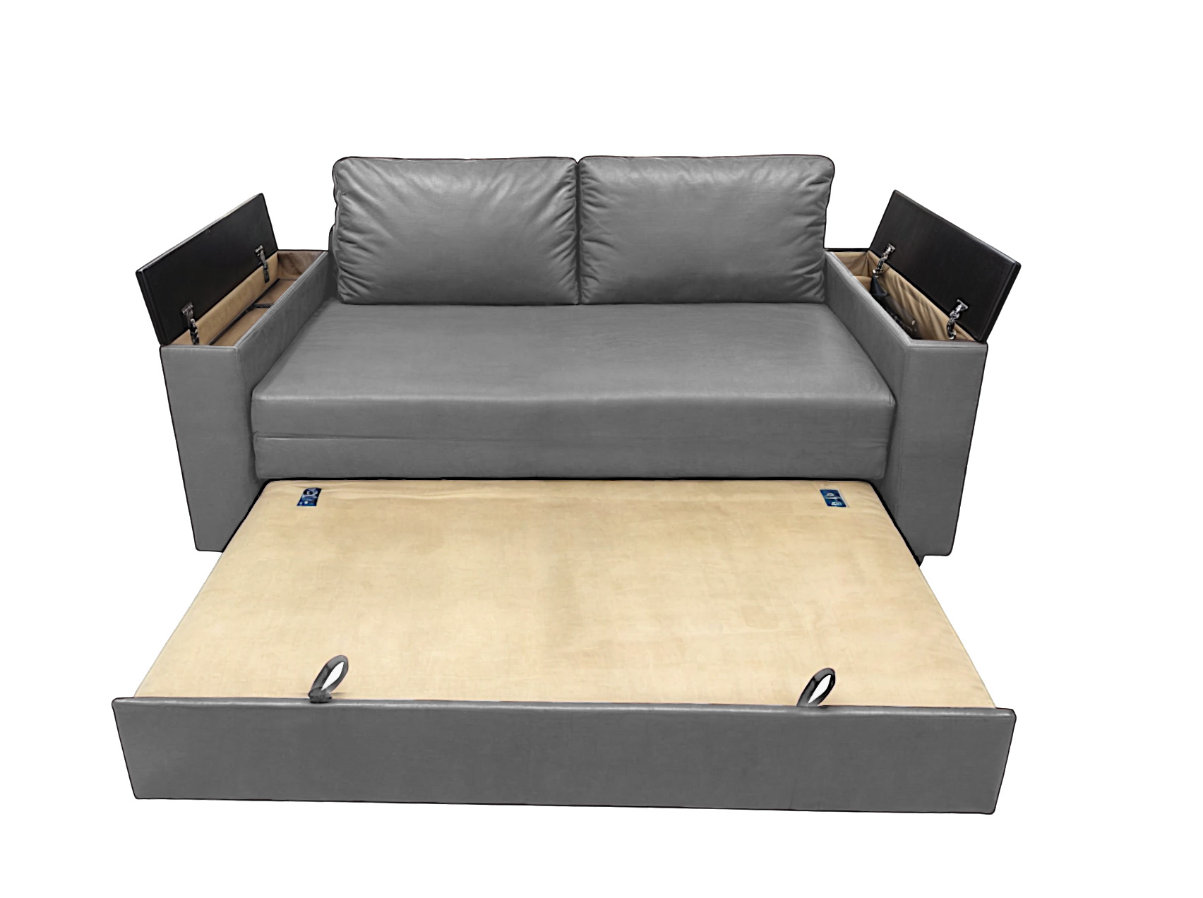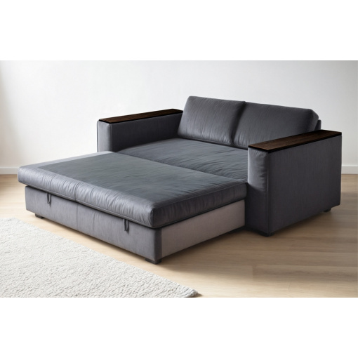 Диван Кубус оснащений трьома місткими нішами для зберігання речей: одна розташована під спальним місцем та дві - в підлокітниках. Це ідеальне рішення для невеликих приміщень, де важлива кожна деталь.