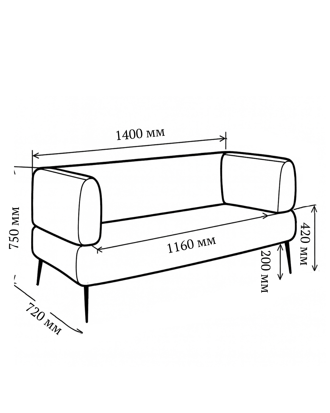 • Ніжки-опори виготовлені з металу. Висота ніжок 200 мм.