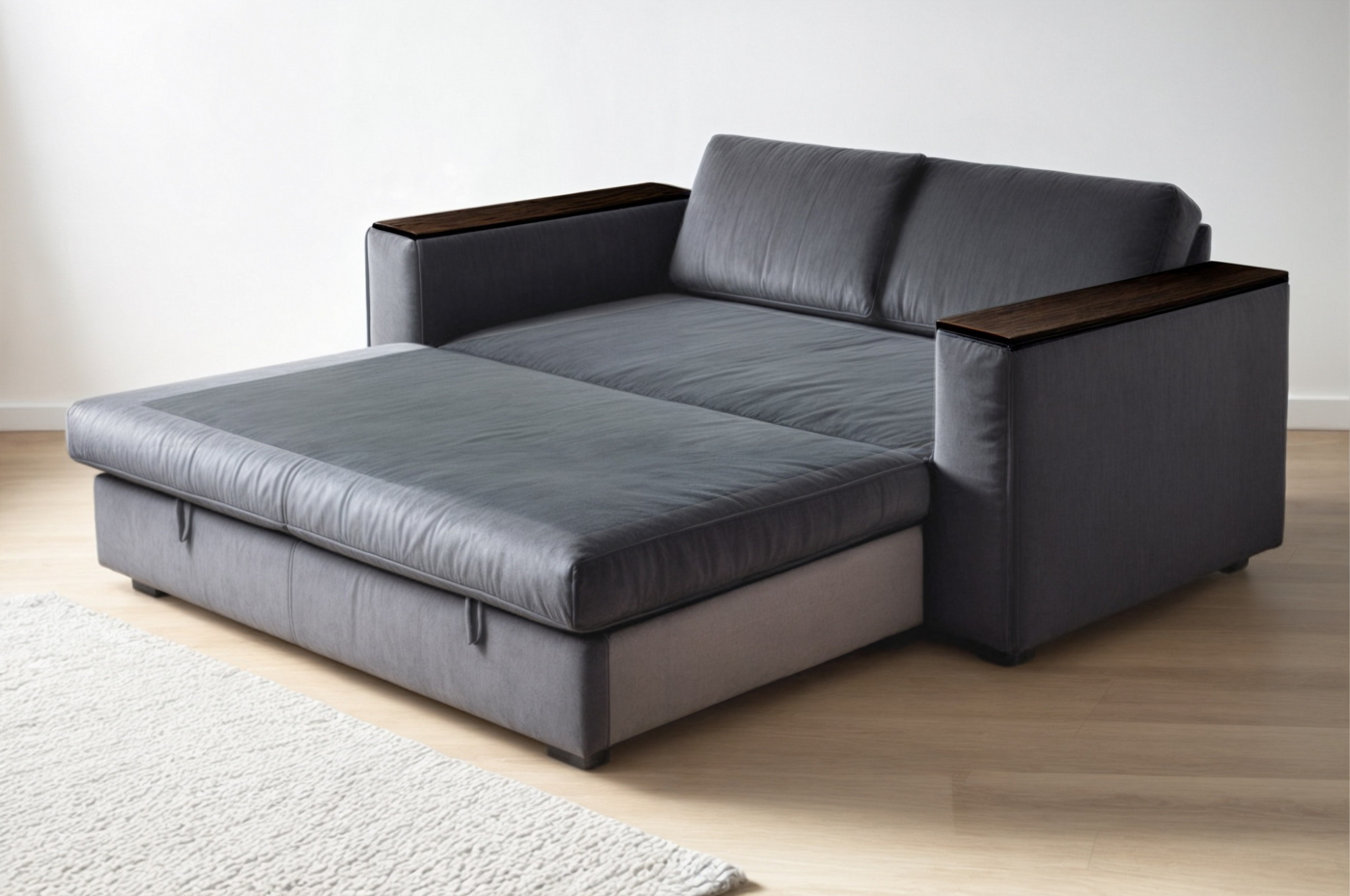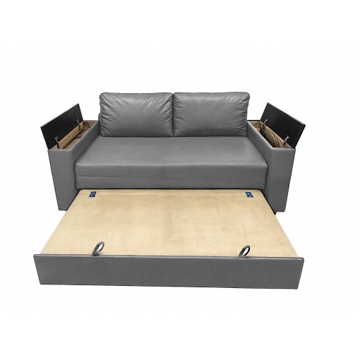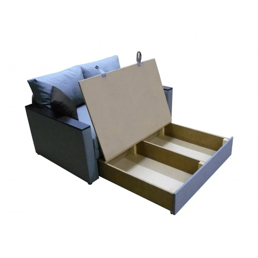 Диван Кубус оснащений трьома місткими нішами для зберігання речей: одна розташована під спальним місцем та дві - в підлокітниках. Це ідеальне рішення для невеликих приміщень, де важлива кожна деталь.