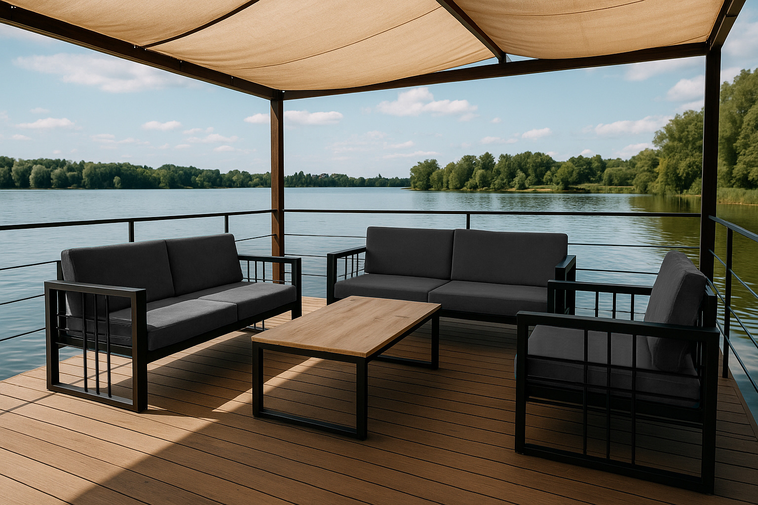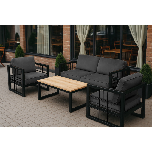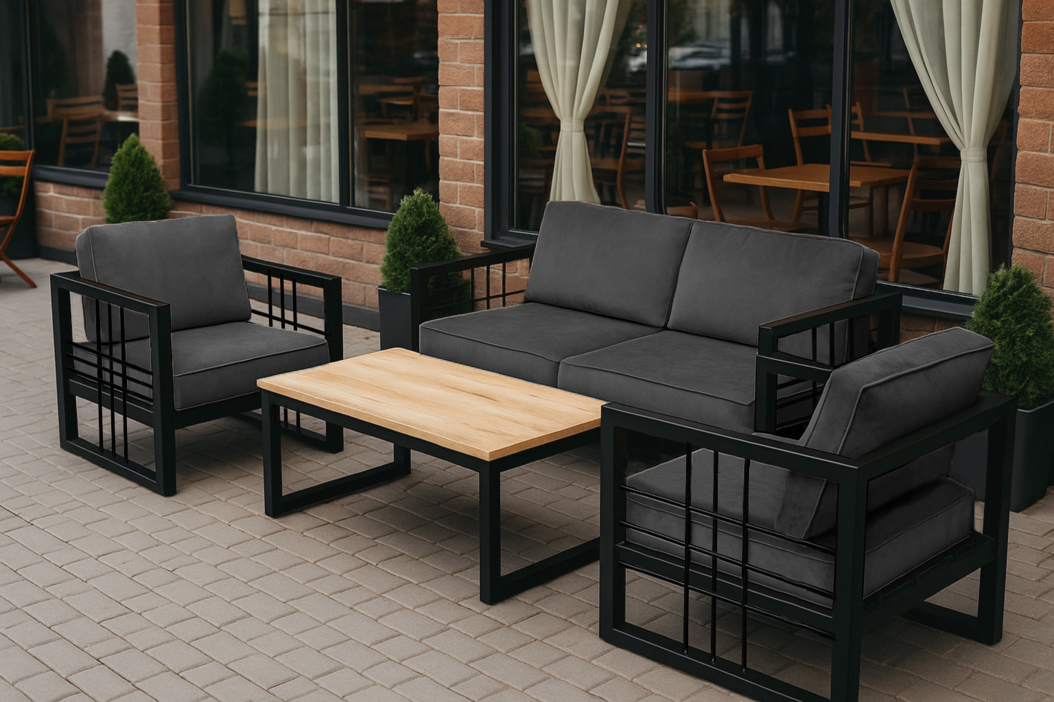 Комплект каркасних металевих меблів «Вердон» (диван та два крісла) — це стильні та міцні меблі у стилі Лофт, які однаково добре підходять для вітальні, офісу, лаунж-зони, тераси чи зони очікування. Завдяки універсальному дизайну комплект гармонійно поєднується як з класичними, так і з сучасними інтер’єрами, створюючи комфортний простір для відпочинку та спілкування.