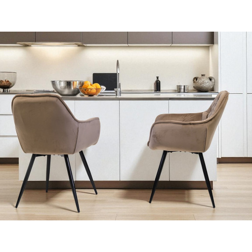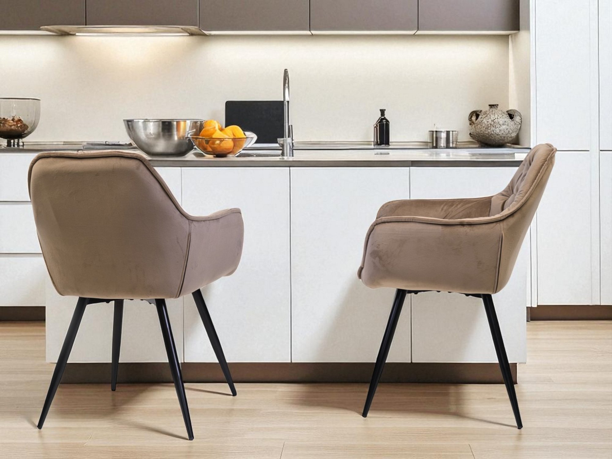 Комплект обеденных стульев Арис М-65 (2 шт.) с подлокотниками, велюр Капучино/черный, для кухни, столовой, 860×580×590 мм