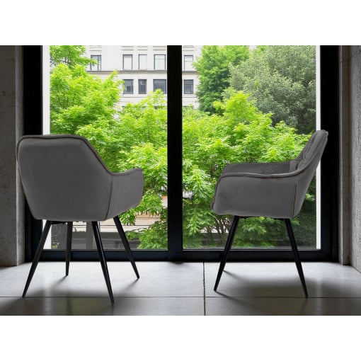 Комплект обеденных стульев Арис М-65 (4 шт.) с подлокотниками, велюр Серый/черный, для кухни, столовой, 860×580×590 мм
