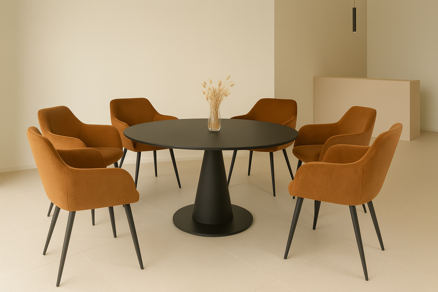 Модель оснащена підлокітниками для додаткового комфорту, а широкі сидіння та зручна глибина гарантують комфорт навіть при тривалому використанні. Комплект «Терра» ідеально підійде для обідніх зон, кухні, робочого кабінету або як стильний декоративний елемент інтер’єру.