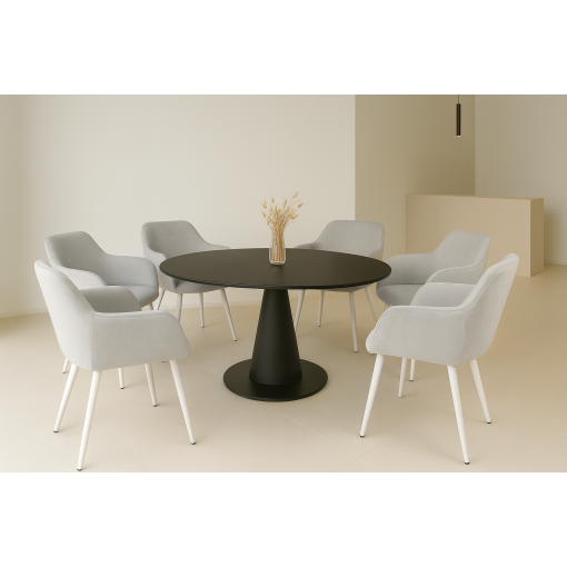 Модель оснащена підлокітниками для додаткового комфорту, а широкі сидіння та зручна глибина гарантують комфорт навіть при тривалому використанні. Комплект «Терра» ідеально підійде для обідніх зон, кухні, робочого кабінету або як стильний декоративний елемент інтер’єру.