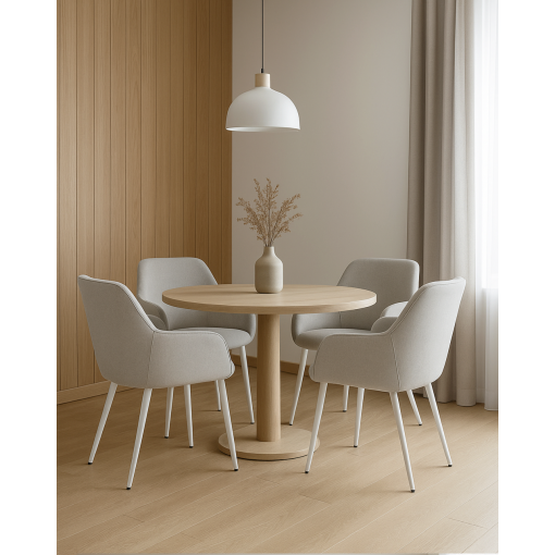 Модель оснащена підлокітниками для додаткового комфорту, а широкі сидіння та зручна глибина гарантують комфорт навіть при тривалому використанні. Комплект «Терра» ідеально підійде для обідніх зон, кухні, робочого кабінету або як стильний декоративний елемент інтер’єру.