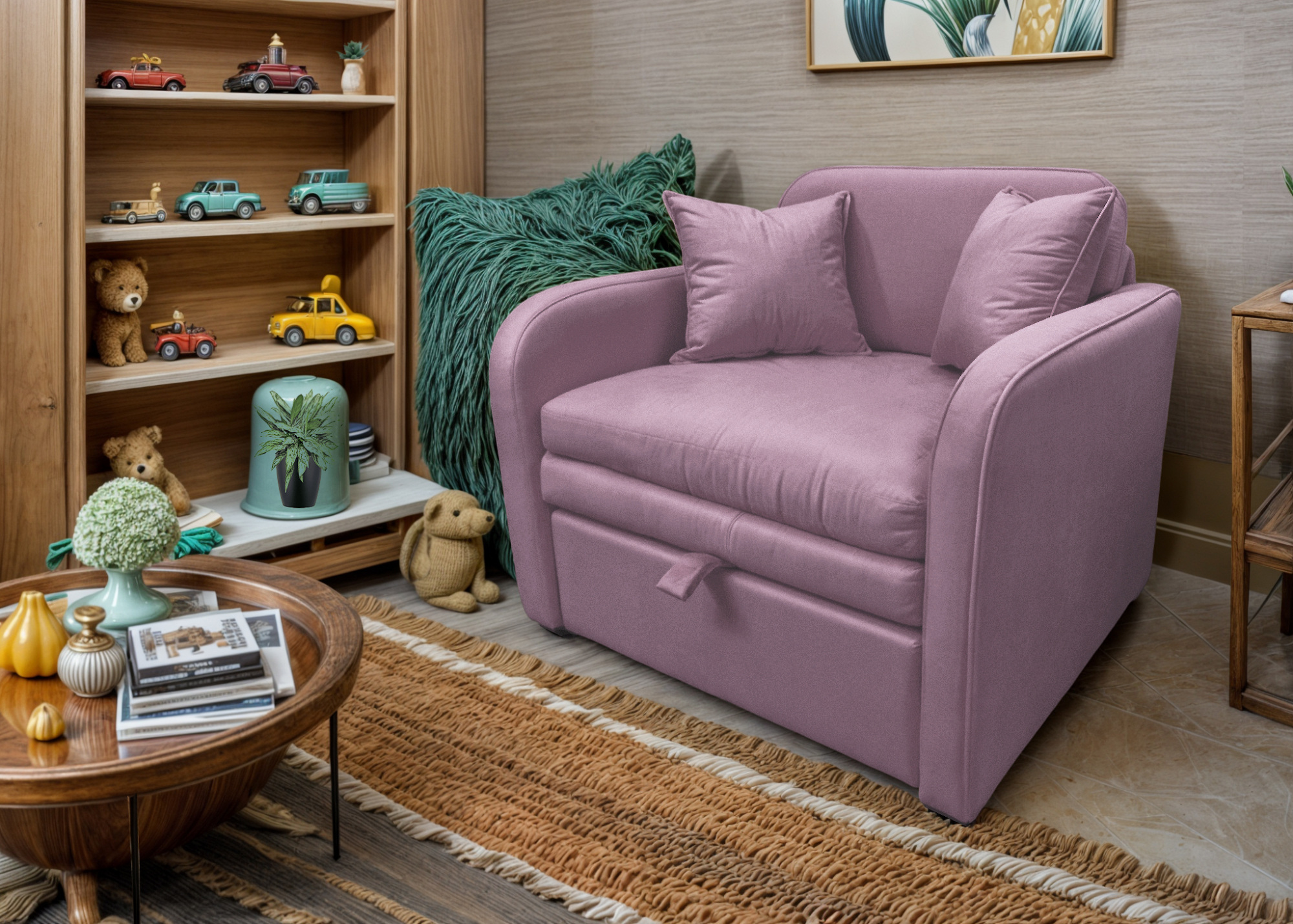 Крісло-диван Юніор - це універсальний меблевий виріб, який легко трансформується у затишне спальне місце. Його конструкція поєднує в собі комфорт, функціональність та естетичний зовнішній вигляд. Має сучасний дизайн, який впишеться у будь-який інтер`єр.
