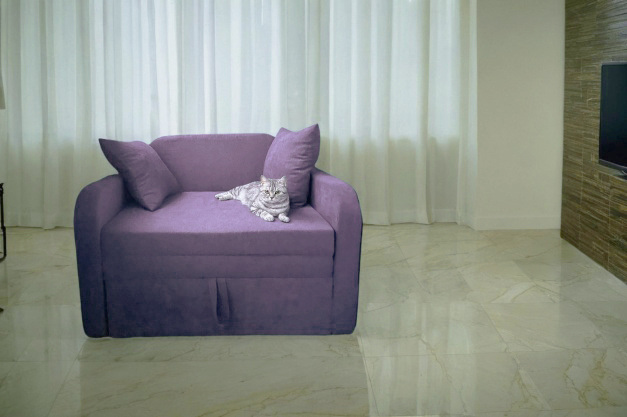 У складеному вигляді крісло-диван займає мало місця, що дозволяє використовувати його у невеликих приміщеннях.