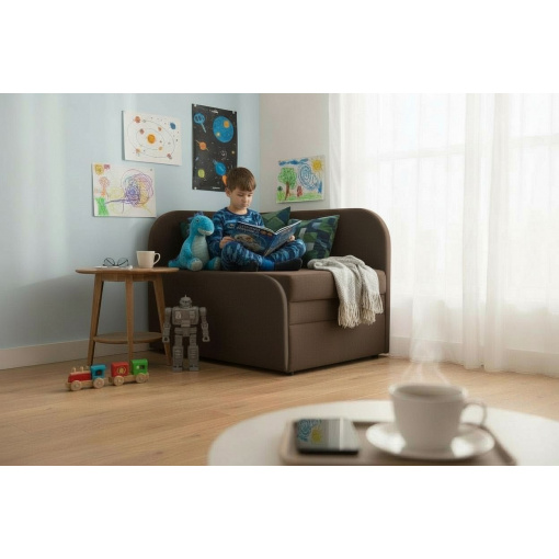 Крісло-ліжко дитяче Tobi Sho Діксі м'яке розкладне лівостороннє велюр Fiore Chocolate, 950х750х700 мм