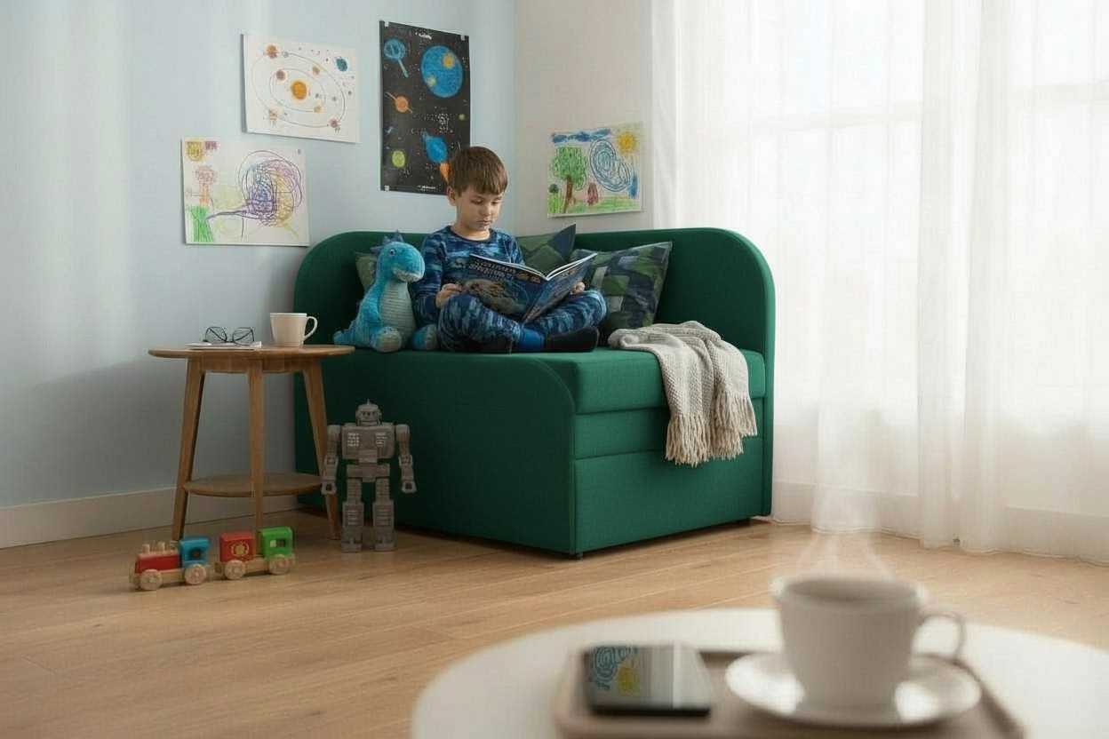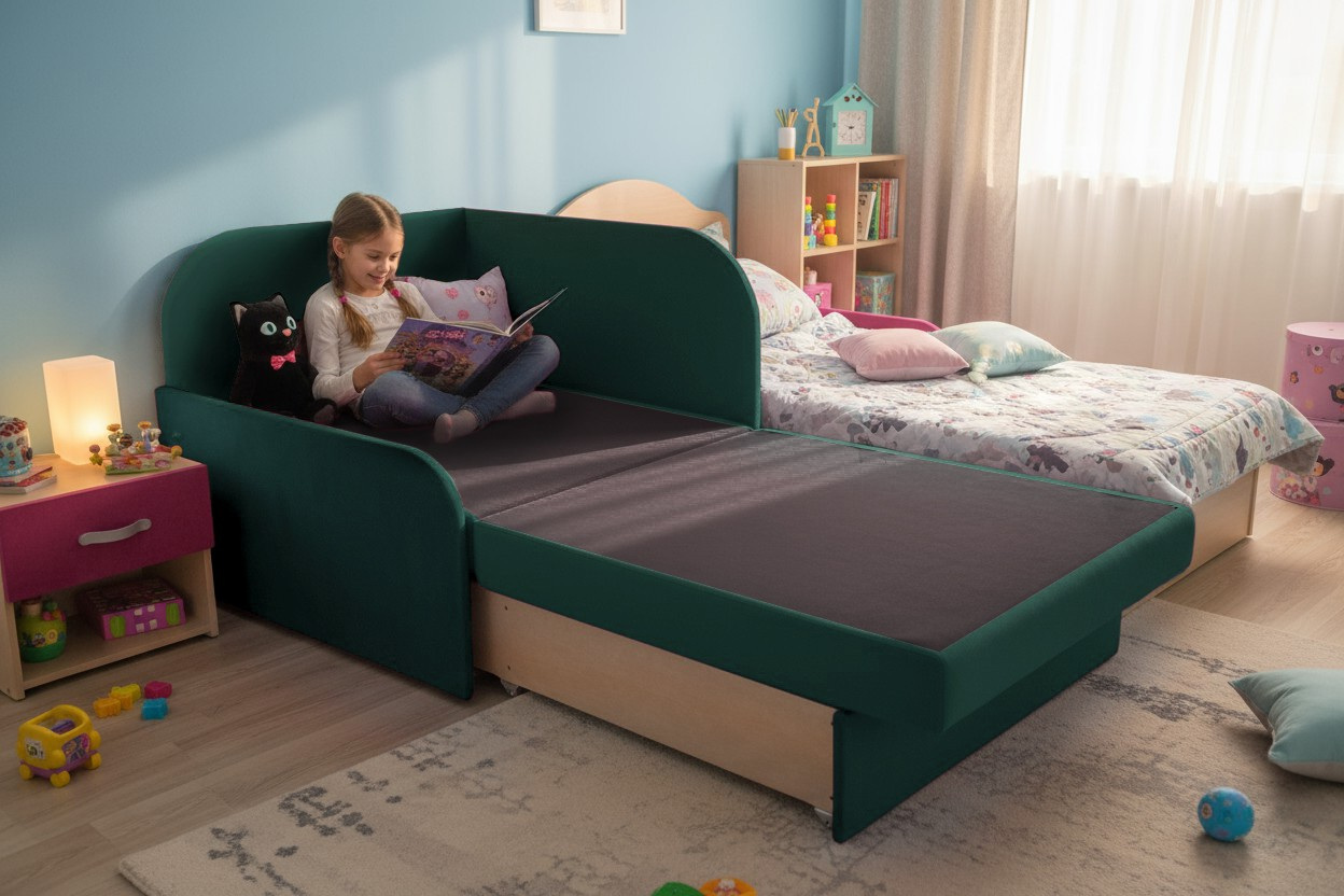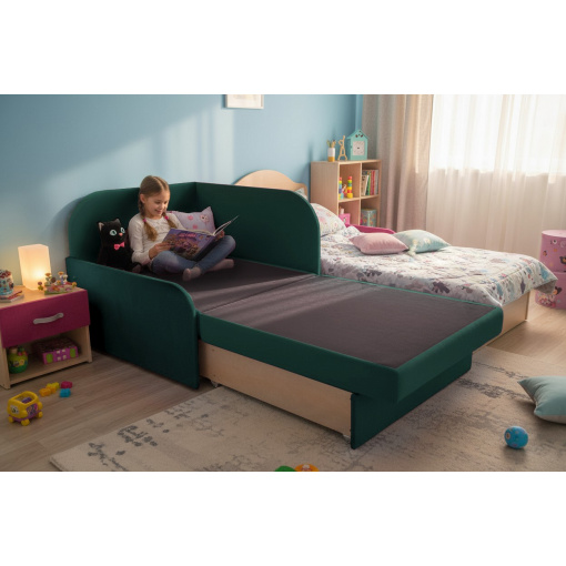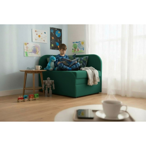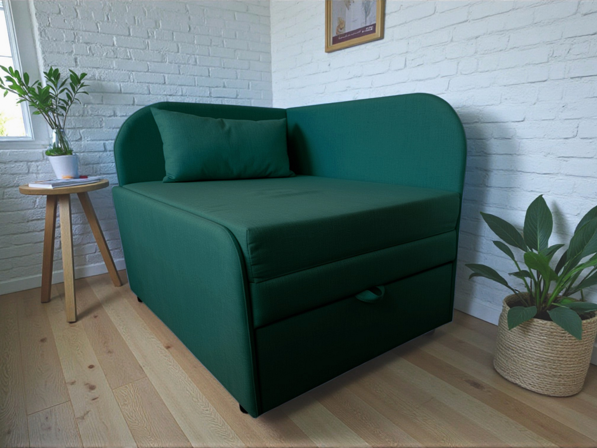Крісло-ліжко дитяче Tobi Sho Діксі м'яке розкладне лівостороннє велюр Fiore Emerald, 950х750х700 мм