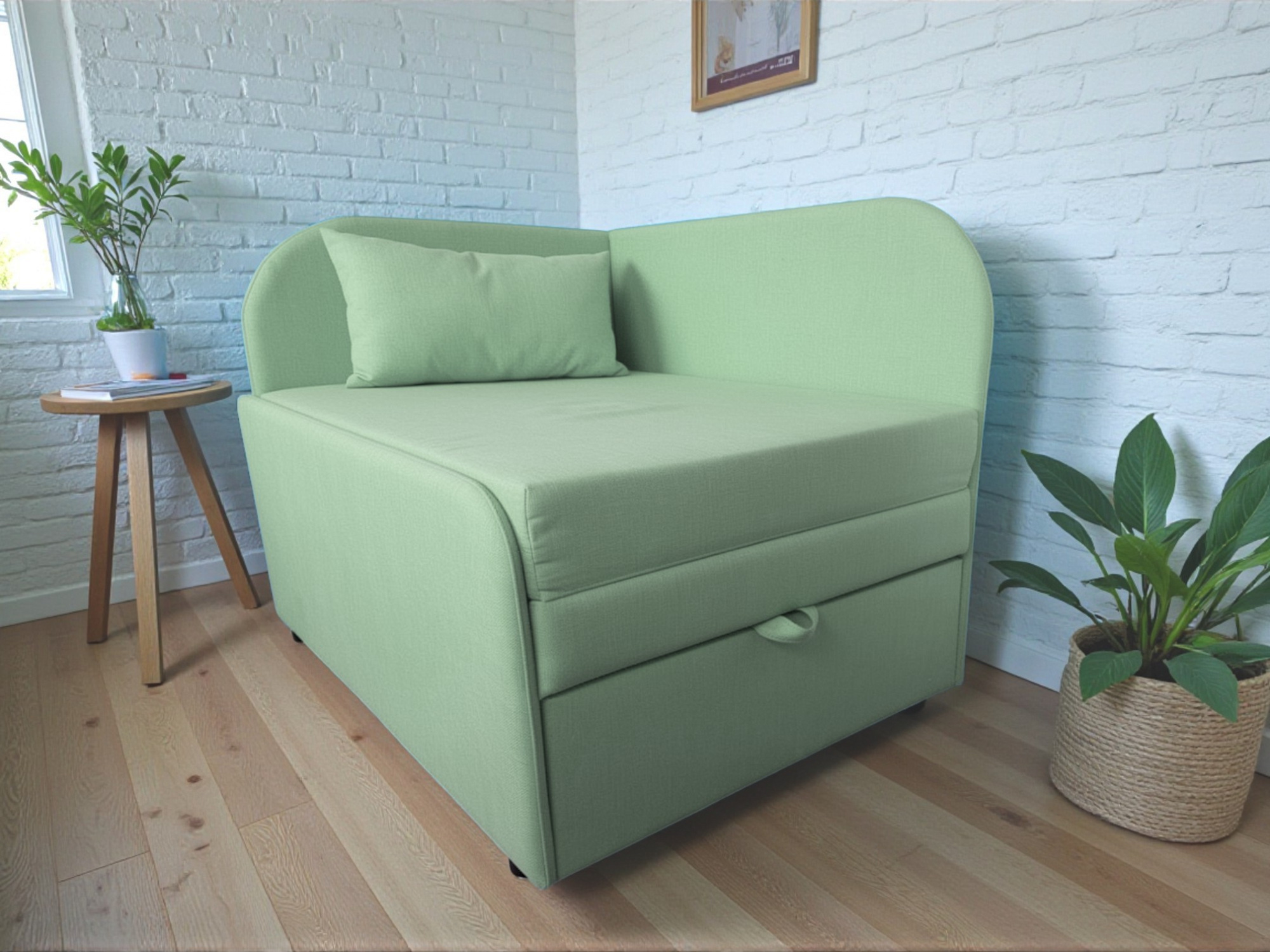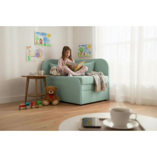 Крісло-ліжко дитяче Tobi Sho Діксі м'яке розкладне лівостороннє велюр Fiore Mint, 950х750х700 мм