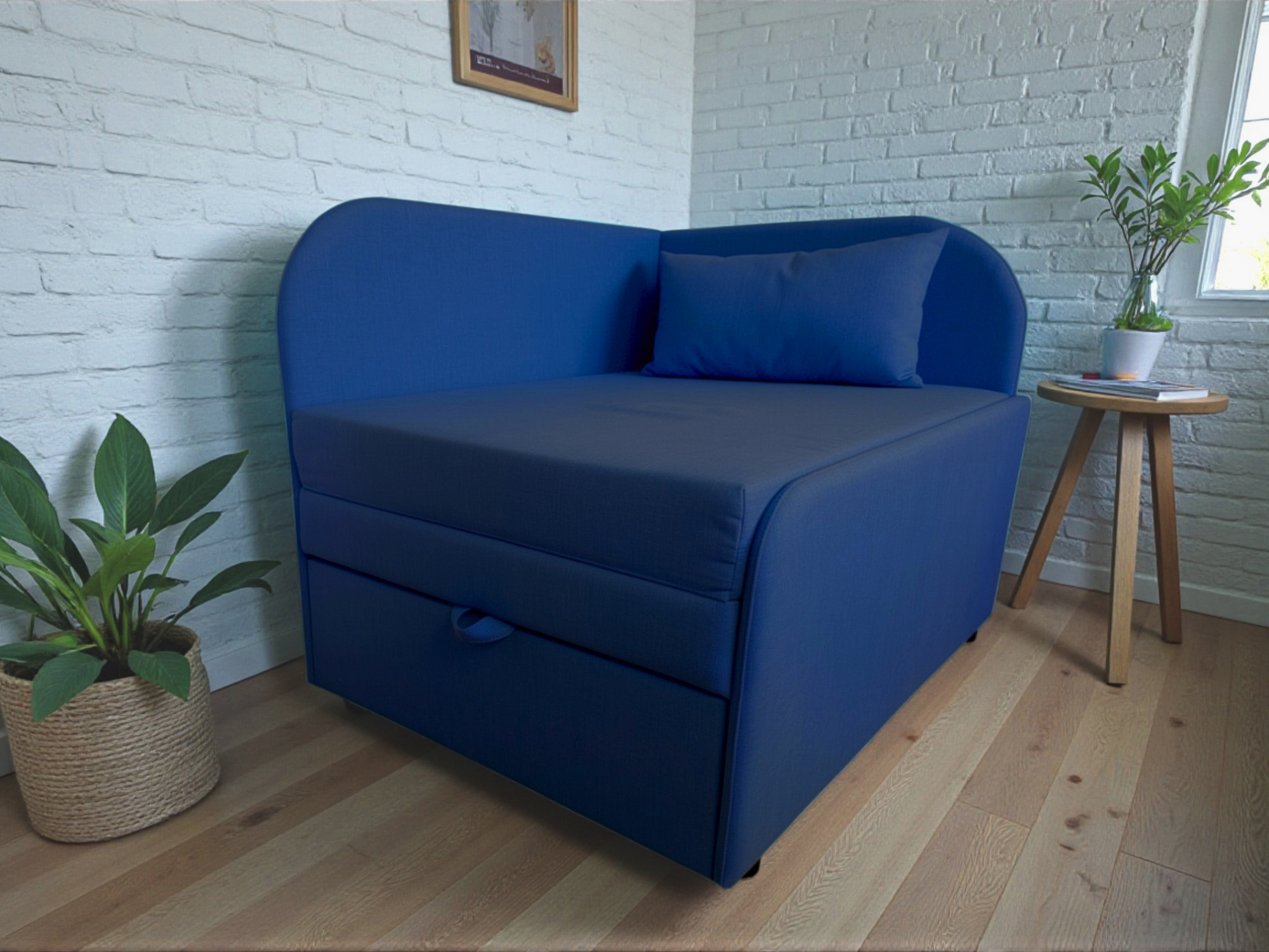 Крісло-ліжко дитяче Tobi Sho Діксі м'яке розкладне правостороннє велюр Fiore Navy, 950х750х700 мм