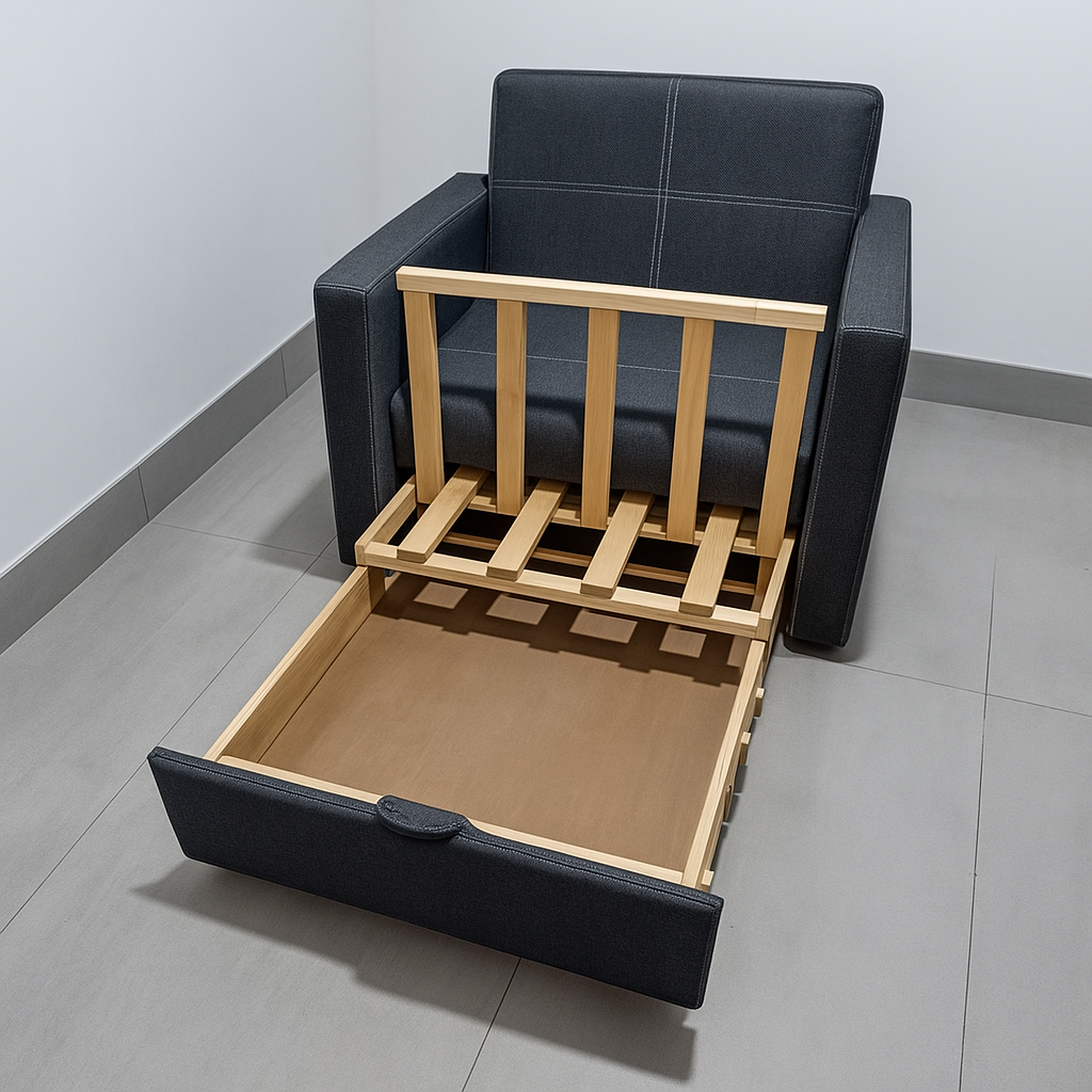 Викатний механізм трансформації дозволяє швидко та легко розкласти крісло у повноцінне ліжко.