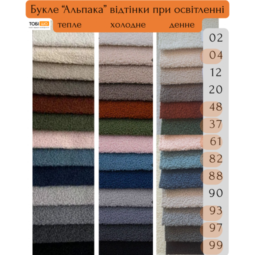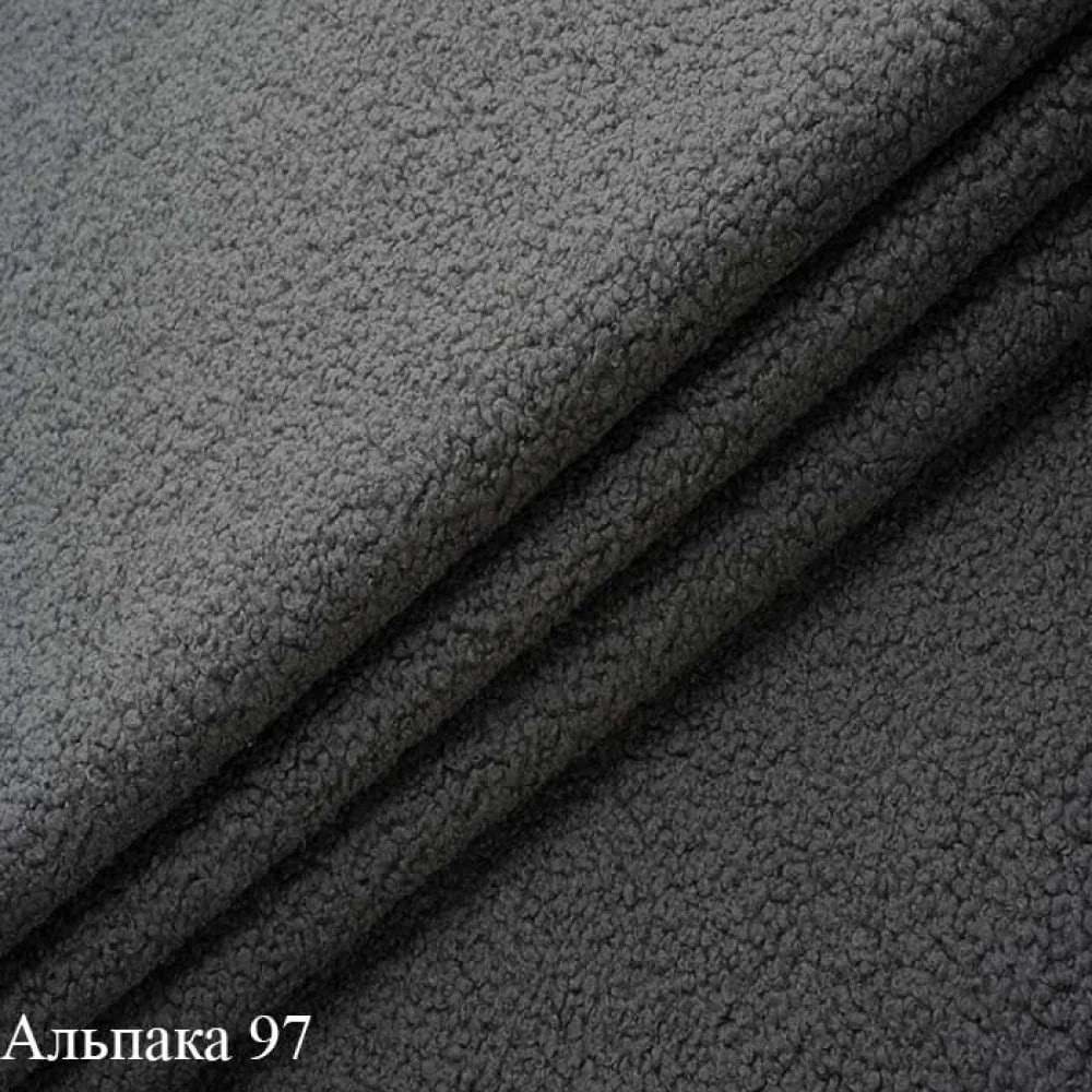 Оббивка виготовлена з м'якого та приємного на дотик букле Альпака зі зносостійкістю 50 000 циклів. Тканина вирізняється практичністю, довговічністю та екологічністю. Її натуральний склад не провокує алергічних реакцій, що робить цей матеріал ідеальним вибором для людей із чутливою шкірою.