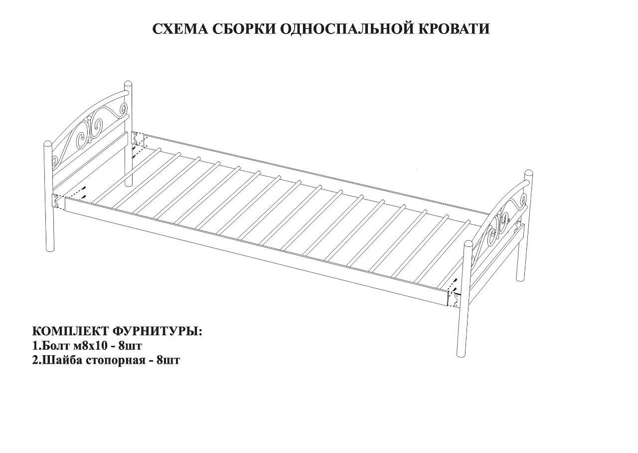 Конструкция поставляется в разобранном виде, а чтобы самостоятельно собрать на месте кровать из металла, понадобится менее получаса.