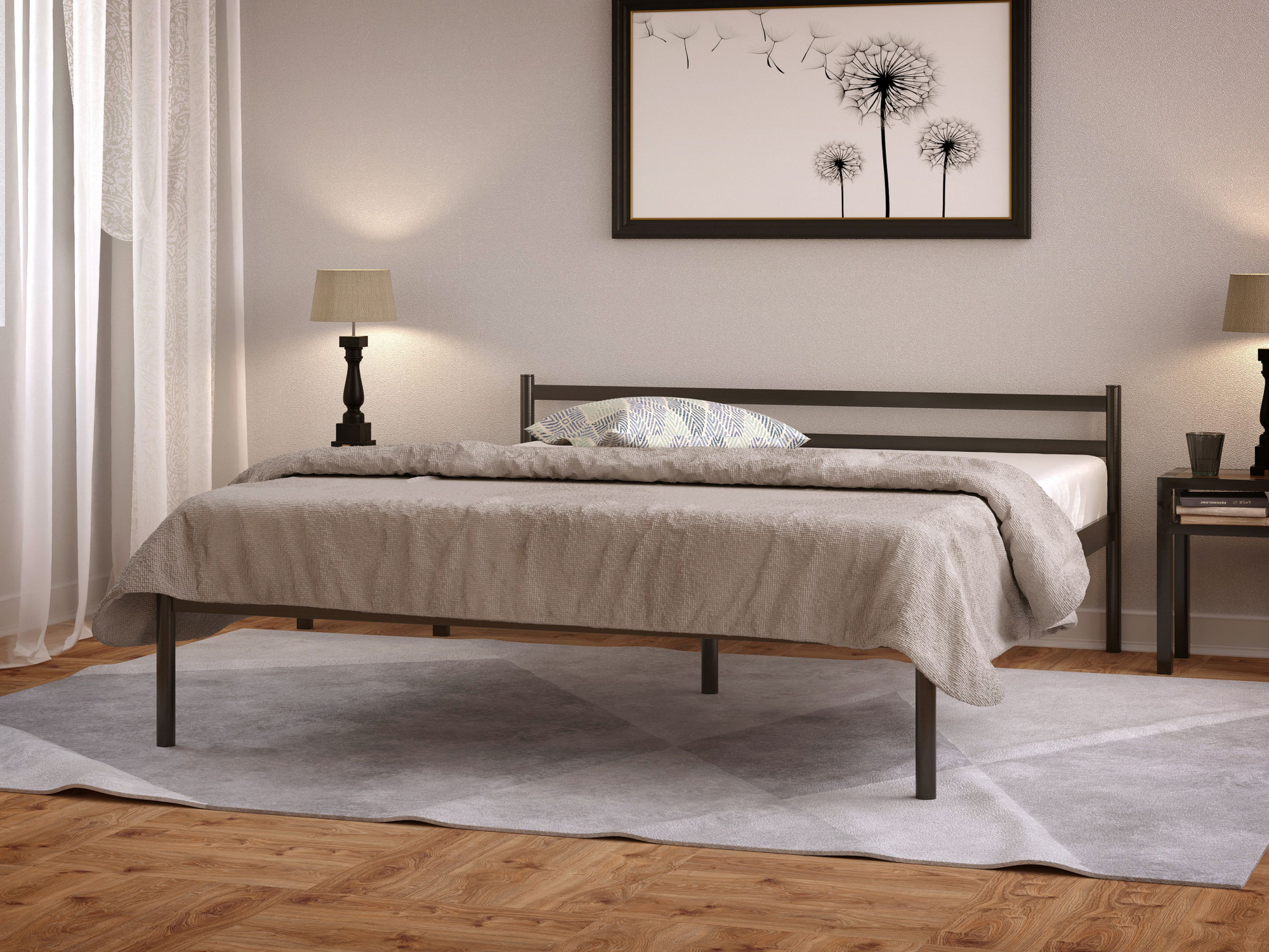 Благодаря практичности, надёжности, долговечности и универсальности металлические кровати не выходят из моды. Их лаконичный дизайн хорошо сочетается с разными вариантами текстиля. Такая кровать сможет идеально вписаться в любой интерьер: минимализм, лофт, арт-деко и модерн.