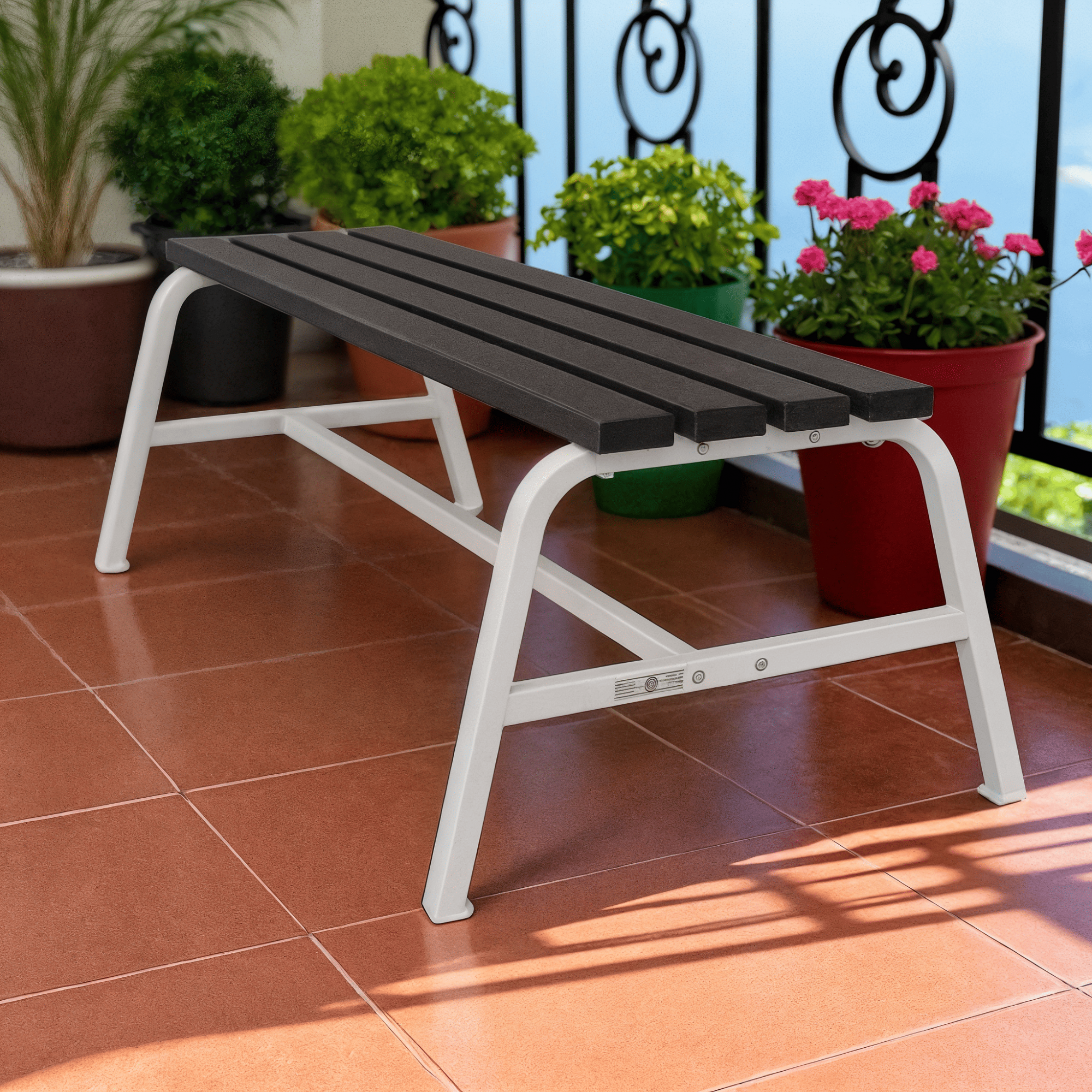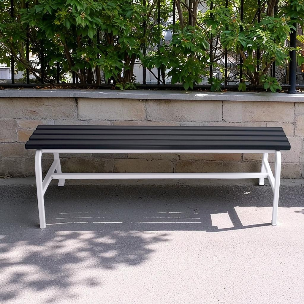 Лавка садова Tobi Sho Класік без спинки для дачі, парку ПВХ профіль, 1503х450х650 мм Графітово-білий