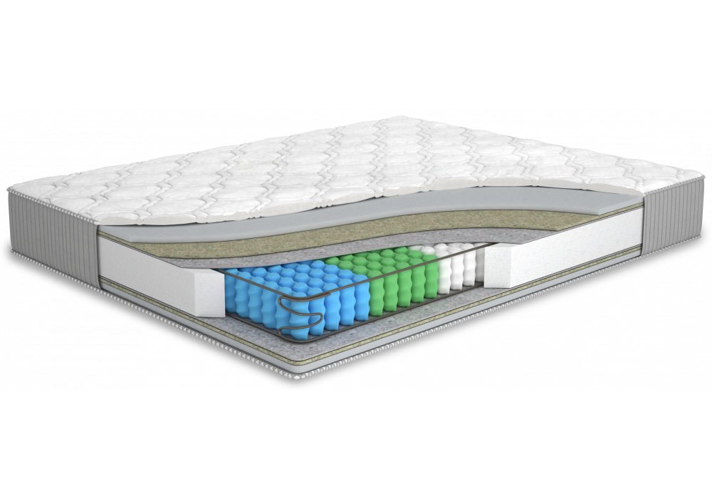 Матрас изготовлен с использованием независимого пружинного блока Multi Pocket 5 zones. Каждая пружина находится в отдельном тканевом чехле. Все 5 зон имеют разную жесткость и отвечают за определенную часть тела, создавая при этом все условия для правильного анатомического расположения спящего человека.