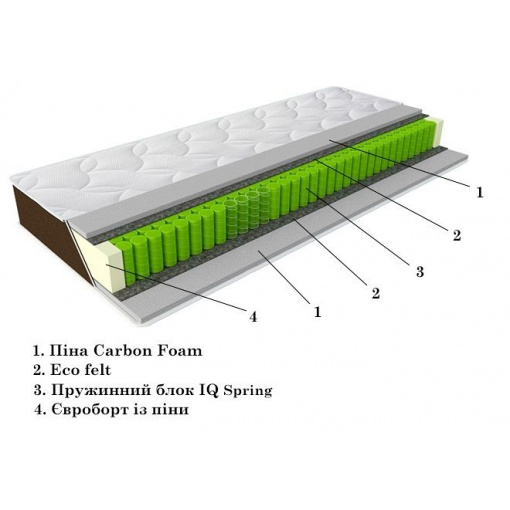 Інноваційна піна Carbon Foam також покращує ортопедичну підтримку спини, а за рахунок комірчастої структури матрац дихає та відводить вологу. Цей матеріал має бактерицидні властивості.