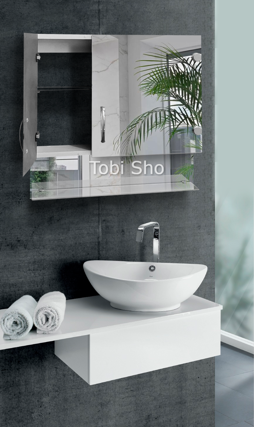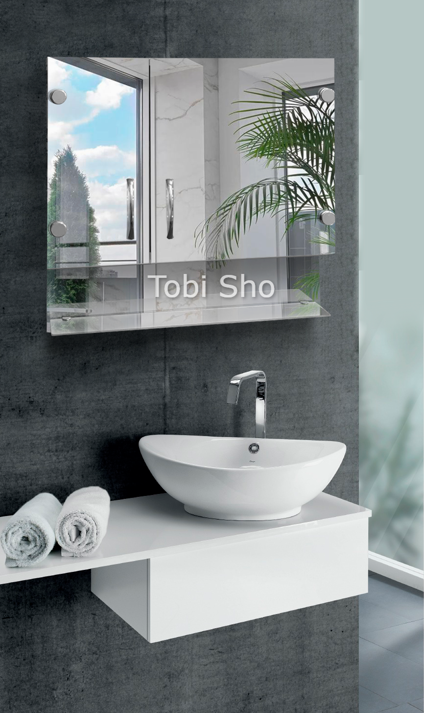 Навісна дзеркальна шафа "Економ" з відкритою полицею для ванної кімнати Tobi Sho ТS-85 600х600х130 мм