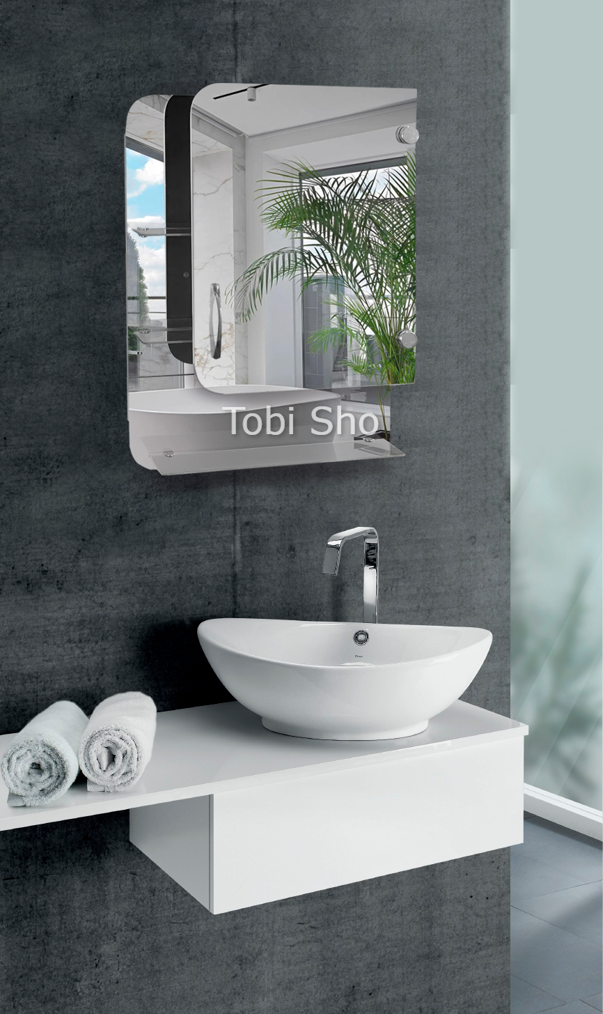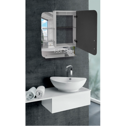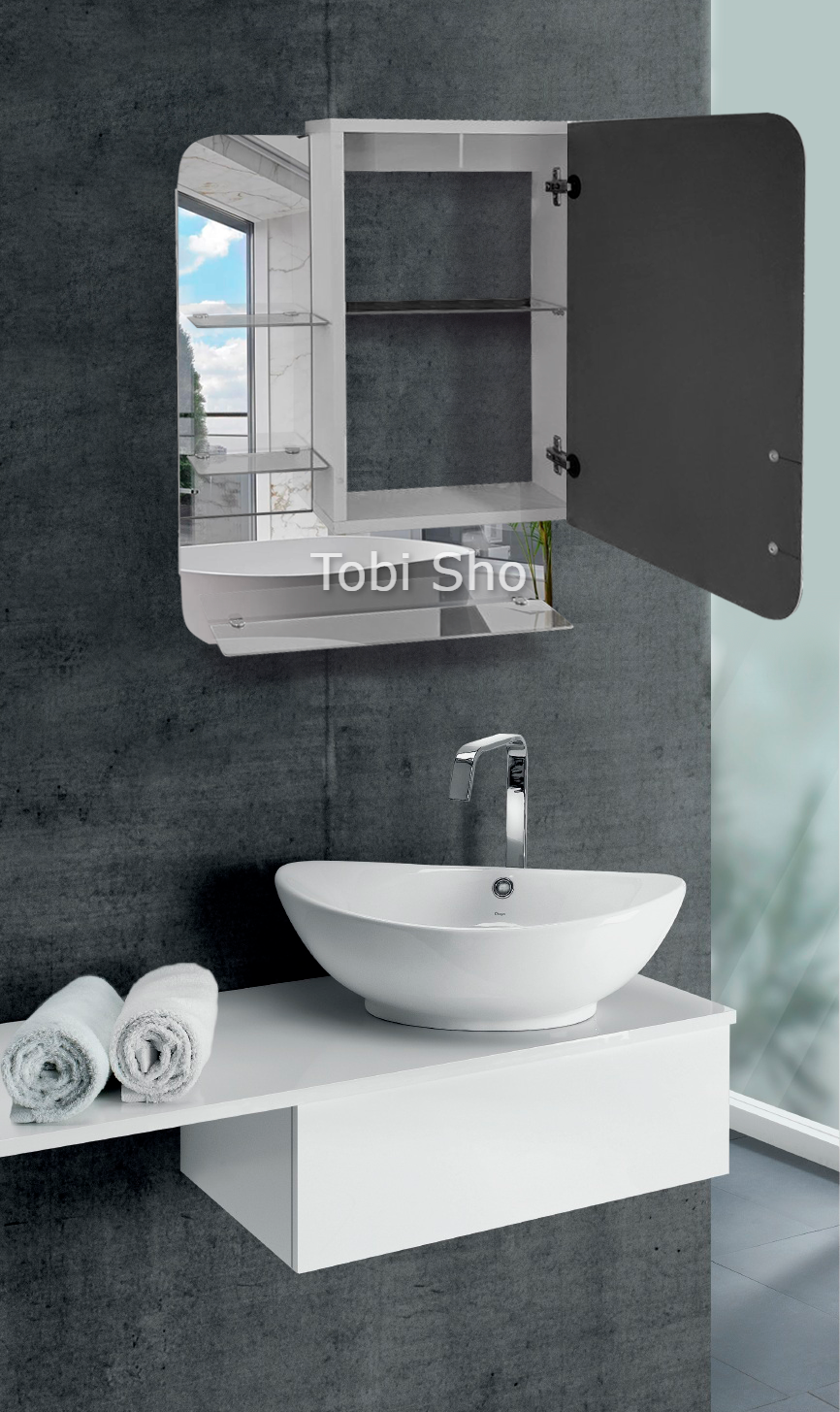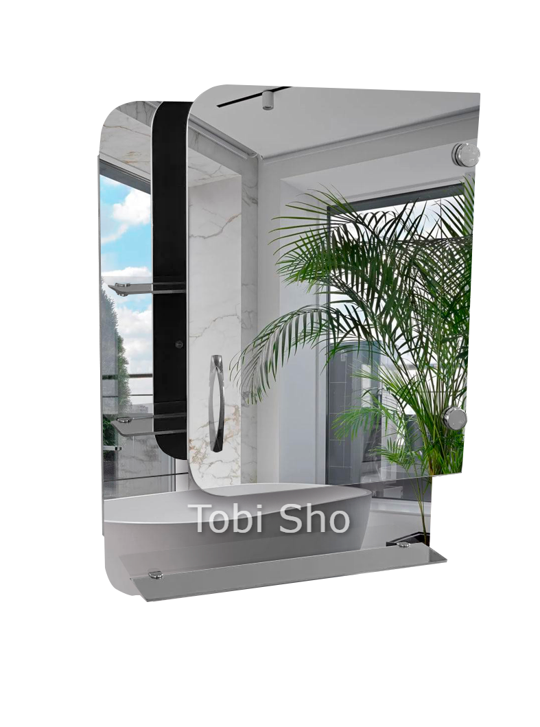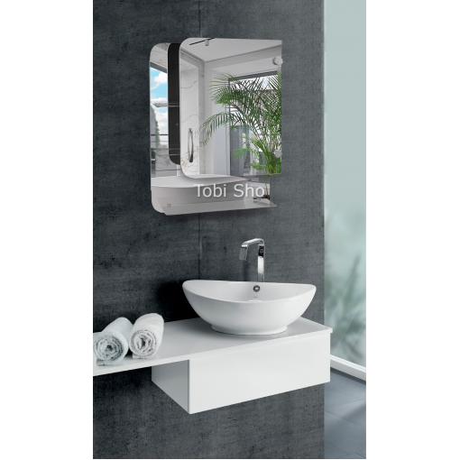 Навісна дзеркальна шафка "Економ" з відкритими полицями для ванної кімнати Tobi Sho ТS-74 500х700х130 мм