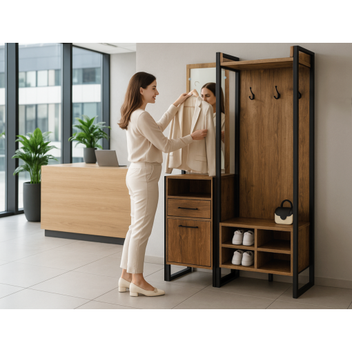 Передпокій у стилі лофт — це сучасний комплект меблів, створений для зручного та стильного облаштування Вашого коридору. Поєднання теплої деревної текстури та чорного металевого каркаса робить такий передпокій виразним акцентом інтер’єру, а продумана функціональність забезпечує комфорт у щоденному користуванні.