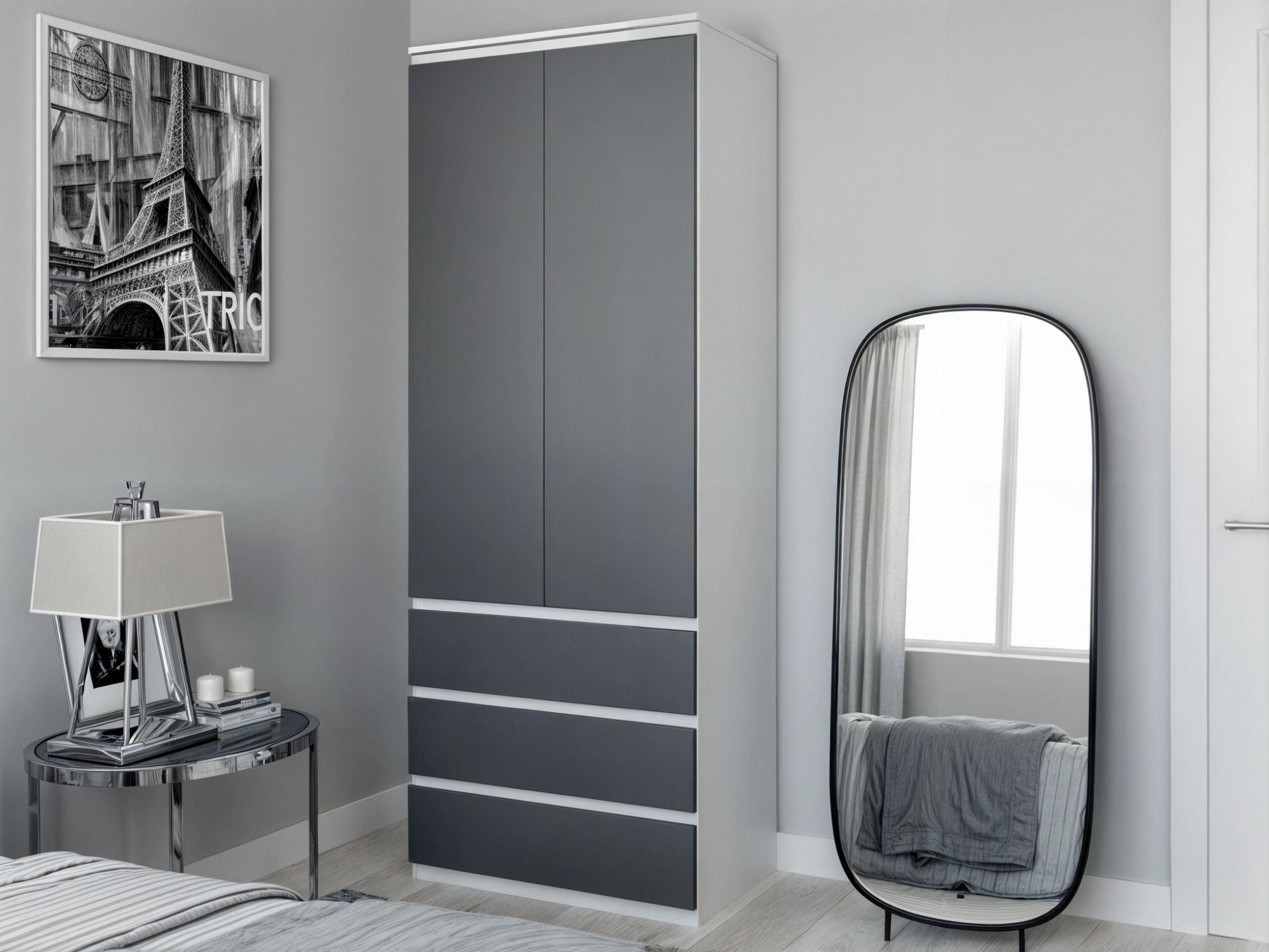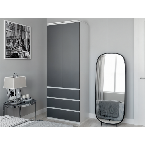Шафа для одягу Tobi Sho T-210 розпашна з полицями та висувними шухлядами, 800х2117х500 мм Білий/Антрацит