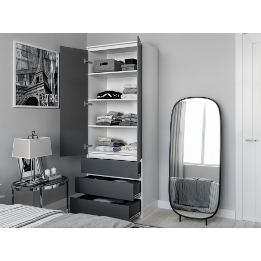 Шукаєте рішення для зберігання речей, яке не обтяжить Ваш інтер'єр? Наша шафа для одягу з розпашними дверцятами – це ідеальний вибір для тих, хто цінує лаконічний дизайн та функціональність.