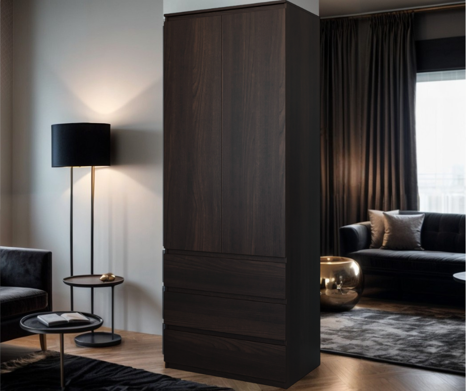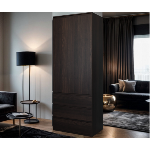 Шафа для одягу Tobi Sho T-210 розпашна з полицями та висувними шухлядами, 800х2117х500 мм Венге