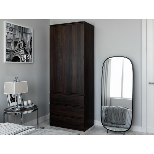 Шафа для одягу Tobi Sho T-211 розпашна з штангою та висувними шухлядами, 800х2117х500 мм Венге/Білий