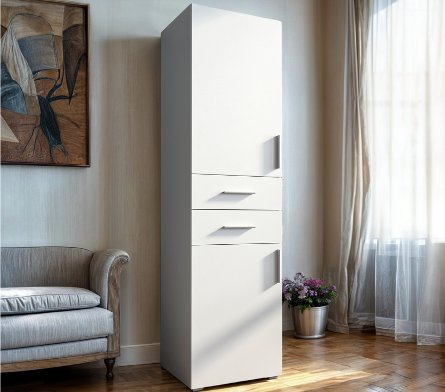Шукаєте рішення для зберігання речей, яке не обтяжить Ваш інтер'єр? Наша компактна шафа-пенал з розпашними дверцятами – це ідеальний вибір для тих, хто цінує лаконічний дизайн та функціональність.