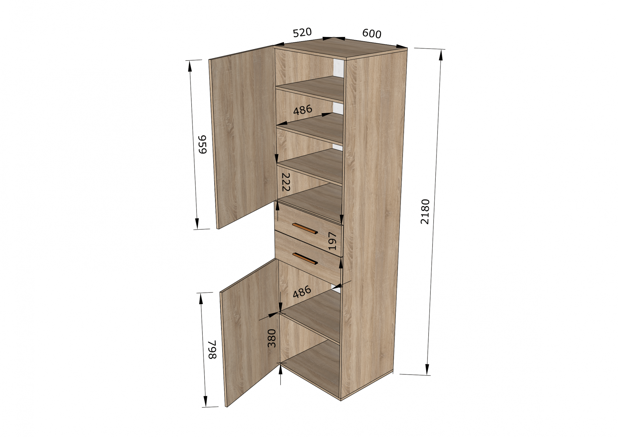 Внутрішній простір пеналу обладнаний полицями, які допоможуть оптимізувати використання простору та створити атмосферу затишку і порядку.