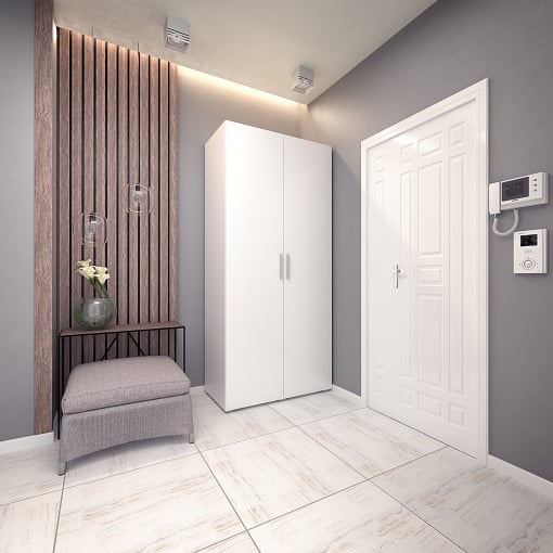 Внутрішній простір шафи обладнаний зручними полицями, які дозволять раціонально організувати зберігання одягу, взуття та аксесуарів.