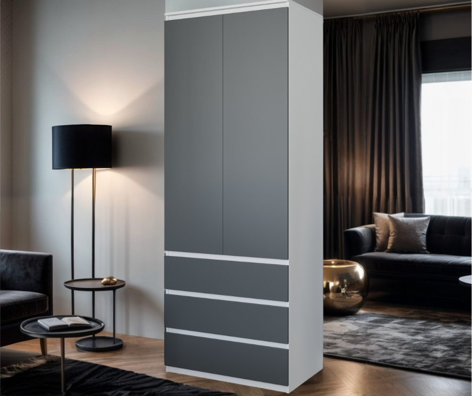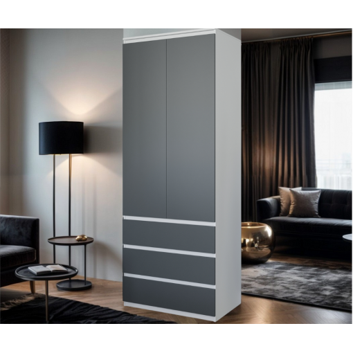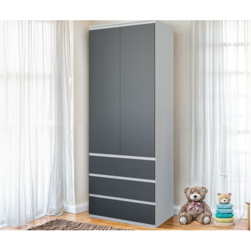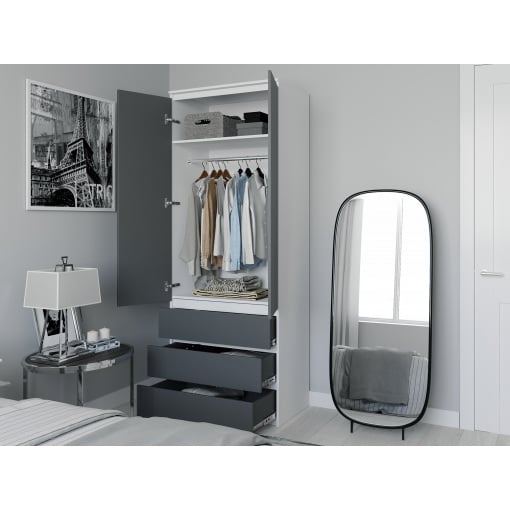 Шафа розпашна Tobi Sho T-211 з штангою та шухлядами для дитячої кімнати, 800х2117х500 мм Білий/Антрацит