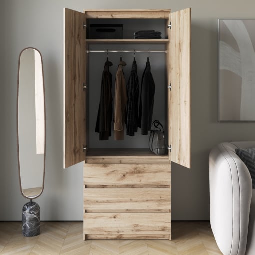 Внутрішній простір шафи обладнаний штангою та полицею, які допоможуть оптимізувати використання простору та створити атмосферу затишку і порядку.