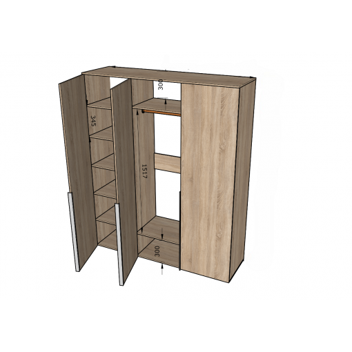 Шафа розпашна тридверна Tobi Sho ST-0027 зі штангою та полицями, 1800х2210х520 мм Сонома