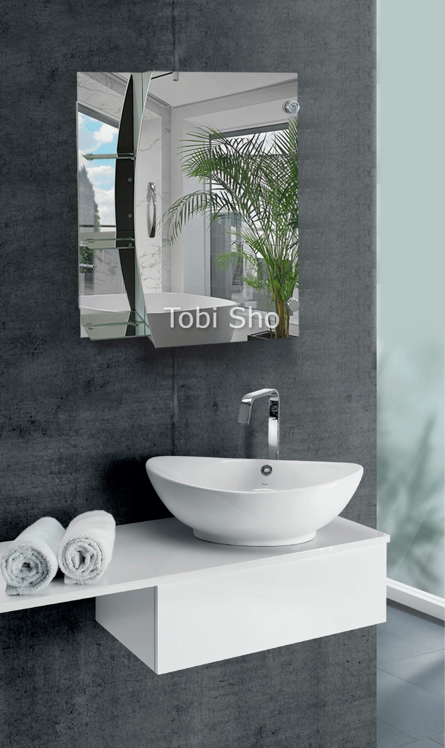 Шафа дзеркальна "Економ" з трьома відкритими полицями для ванної кімнати Tobi Sho ТS-57 550х650х130 мм
