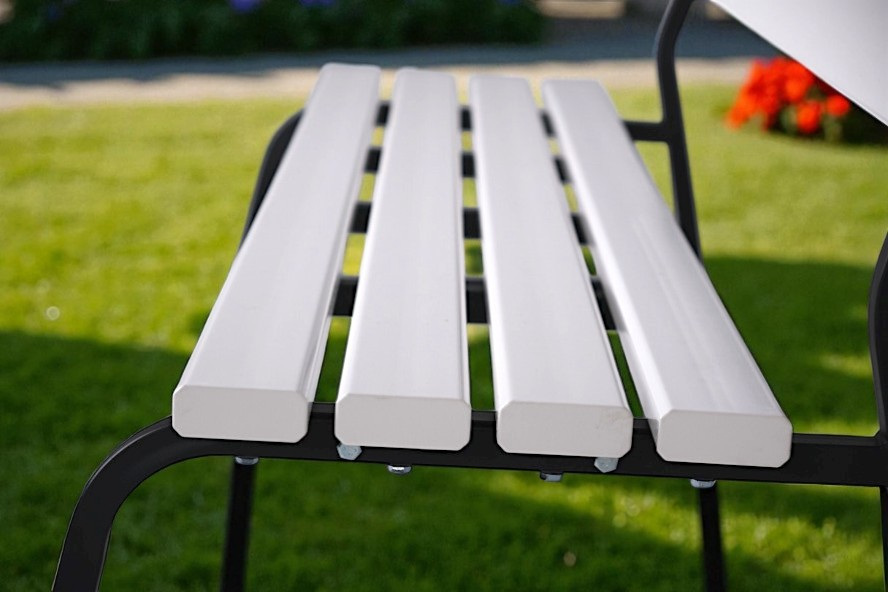 Лавка зі спинкою «Комфорт Класік» - ідеальна для саду, дачі чи громадського простору. Сидіння та спинка з високоякісного ПВХ стійкі до сонця, вологи та не потребують догляду. Металевий каркас гарантує міцність і довговічність, порошкове фарбування захищає від корозії.