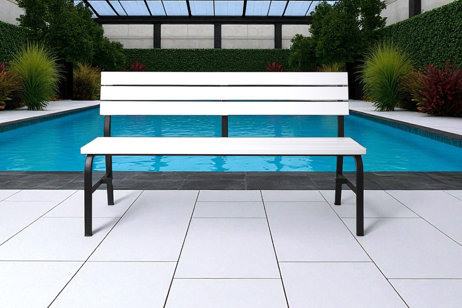 Лавка пластикова Tobi Sho Комфорт Класік для дачі, саду, парку, 1504х822х707 мм Біло-чорна