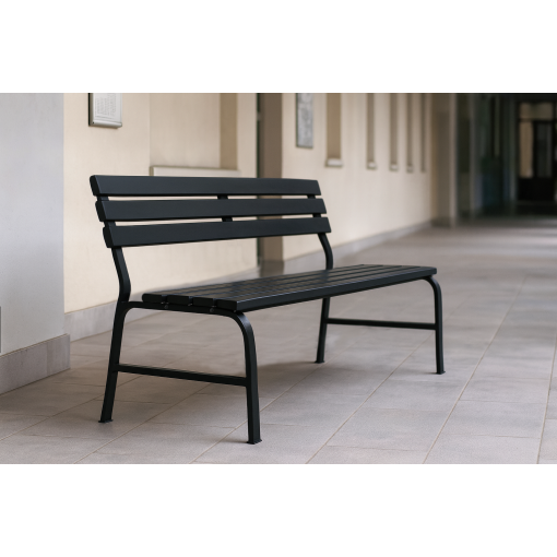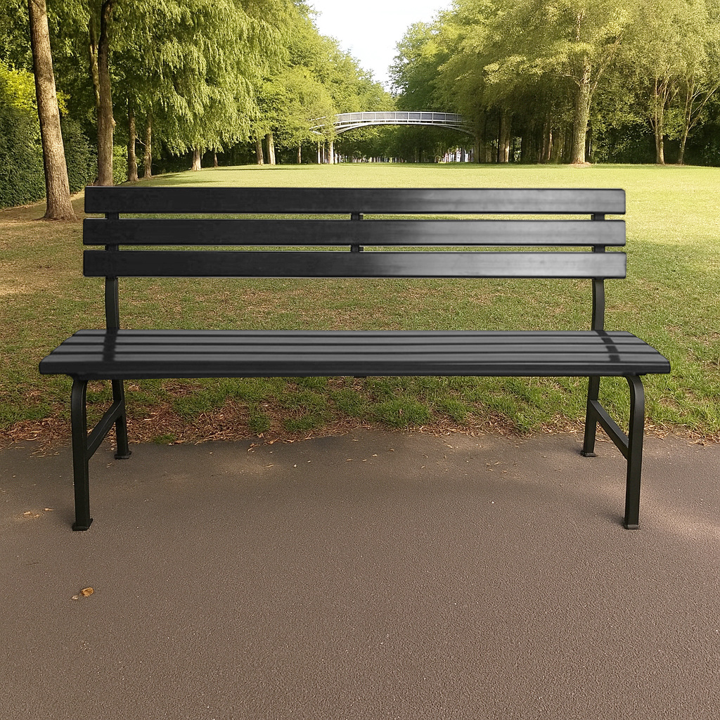 Лавка зі спинкою «Комфорт Класік» - ідеальна для саду, дачі чи громадського простору. Сидіння та спинка з високоякісного ПВХ стійкі до сонця, вологи та не потребують догляду. Металевий каркас гарантує міцність і довговічність, порошкове фарбування захищає від корозії.