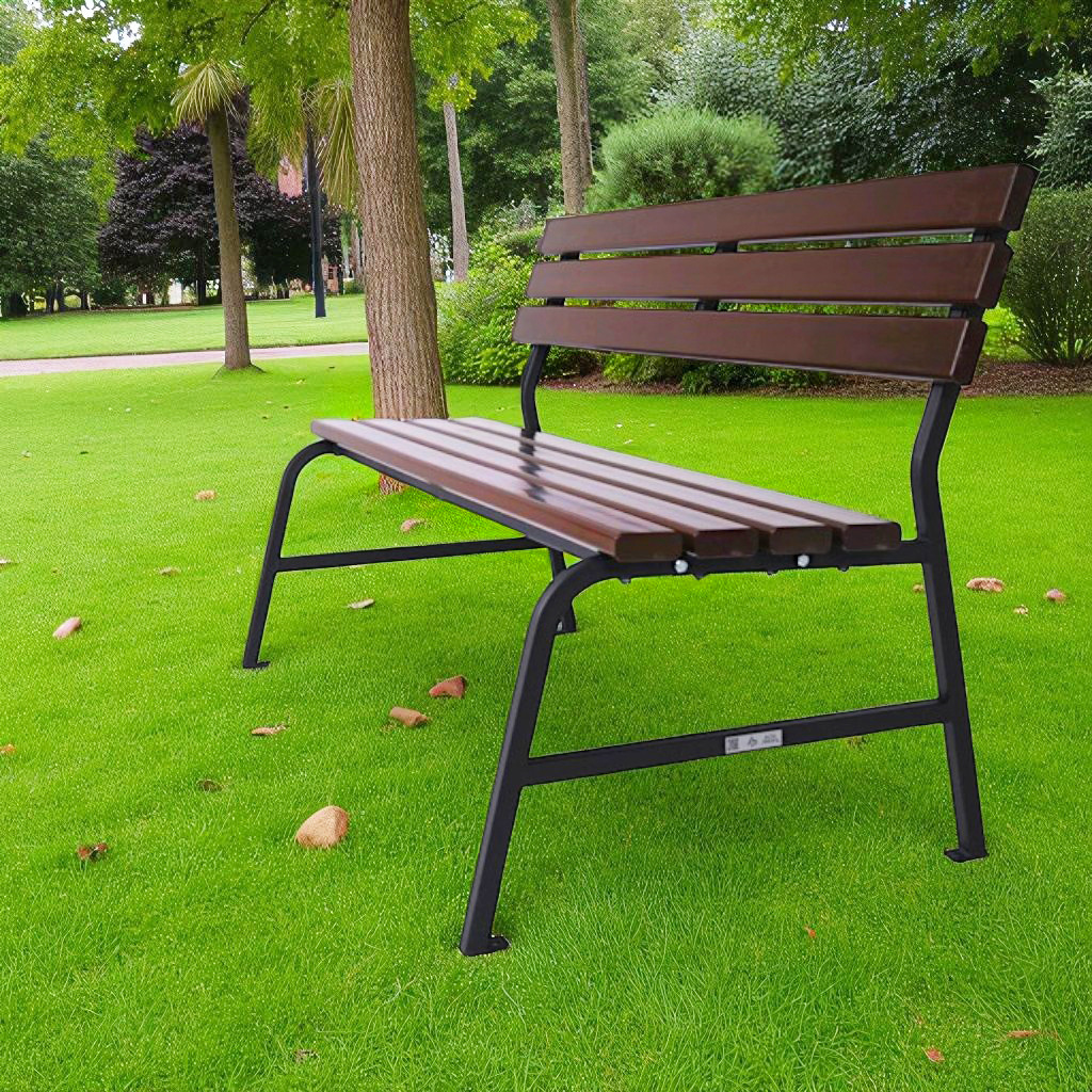 Лавка зі спинкою «Комфорт Класік» - ідеальна для саду, дачі чи громадського простору. Сидіння та спинка з високоякісного ПВХ стійкі до сонця, вологи та не потребують догляду. Металевий каркас гарантує міцність і довговічність, порошкове фарбування захищає від корозії.