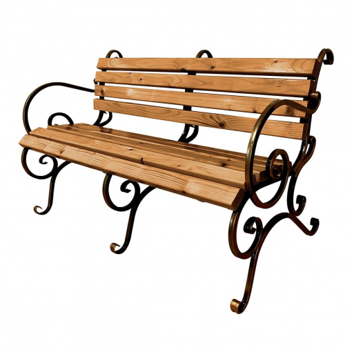 Детальні характеристики Лавка садова кована Tobi Sho з підлокітниками посилена 170 см колір дуб.