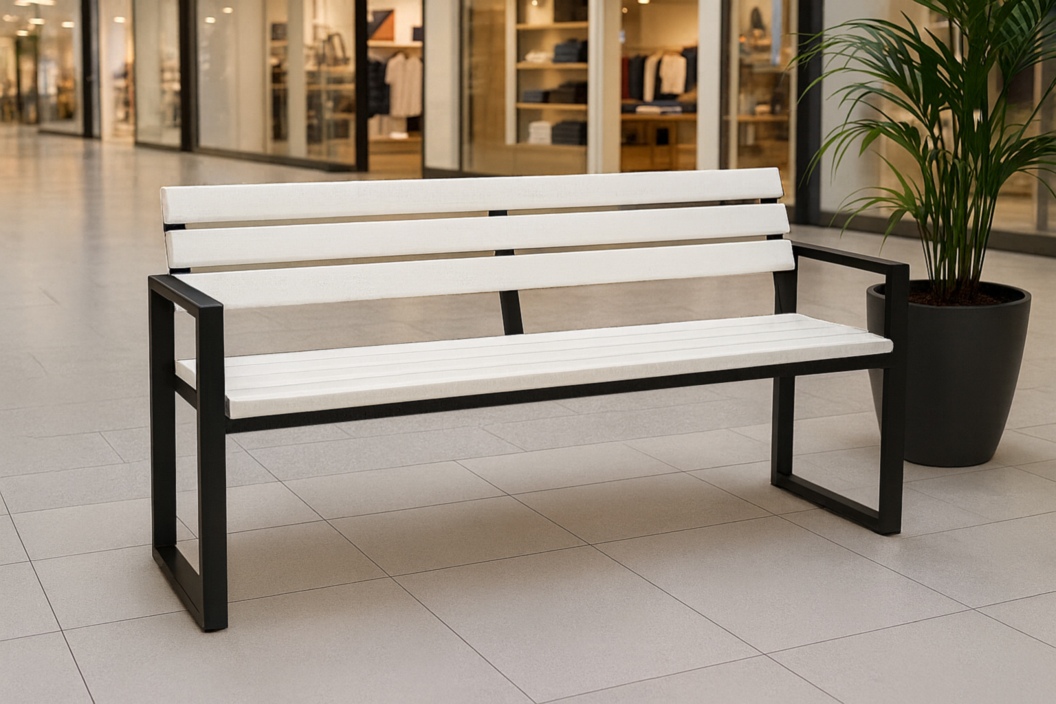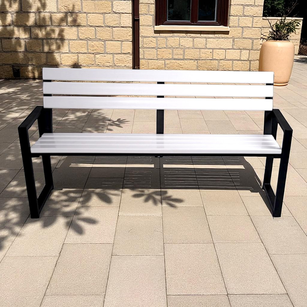 Лавка садова Tobi Sho Модерн Люкс ПВХ профіль для дачі, парку, ОСББ, 1614х838х545 мм Біло-чорний