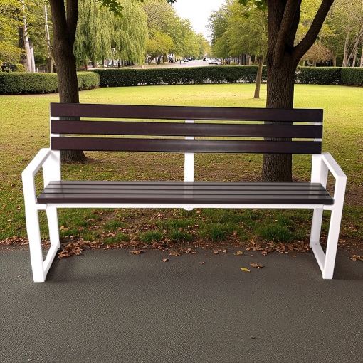 Лавка садова Tobi Sho Модерн Люкс ПВХ профіль для дачі, парку, ОСББ, 1614х838х545 мм Коричнево-білий