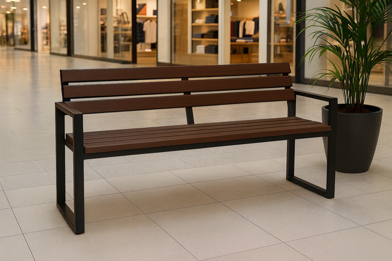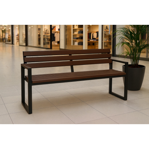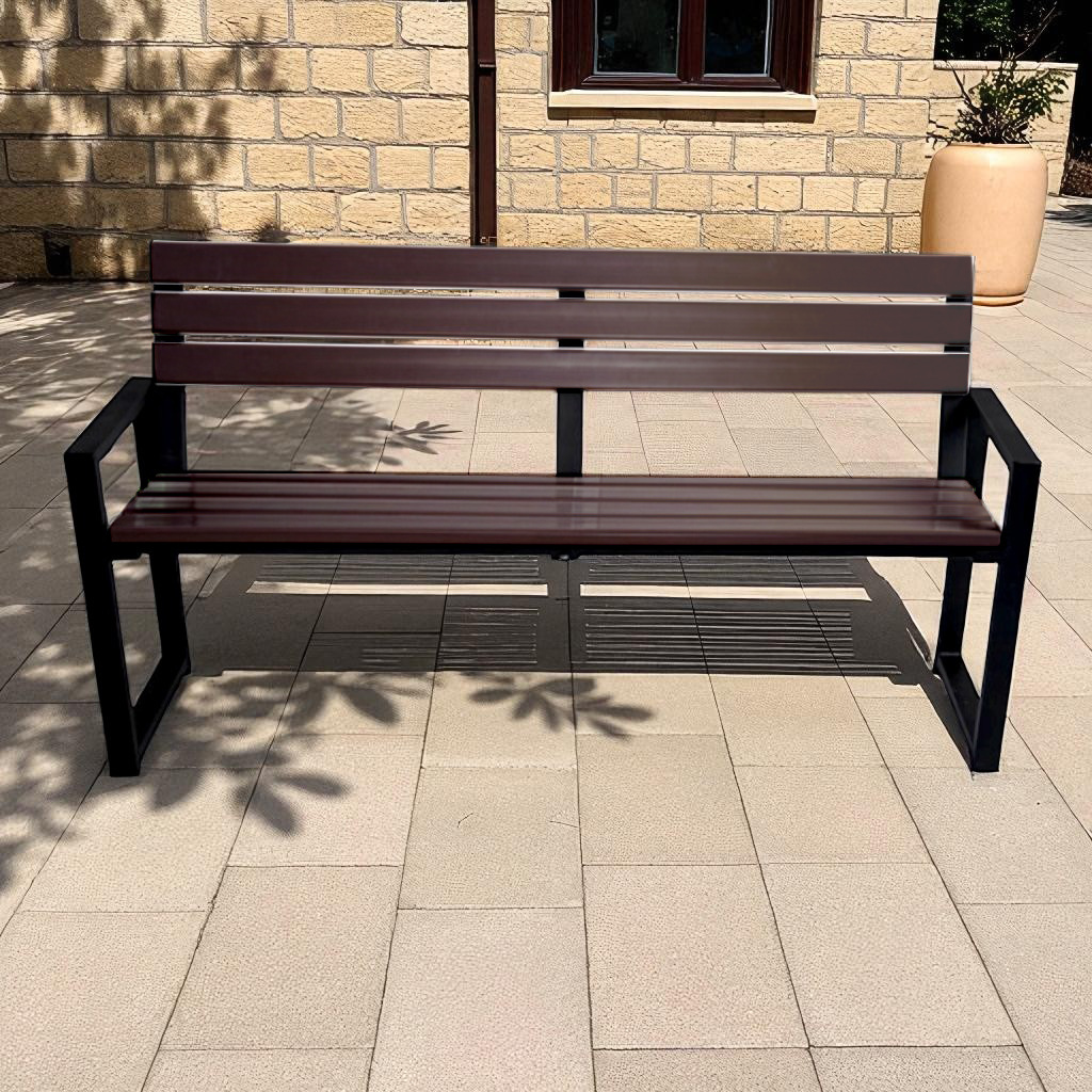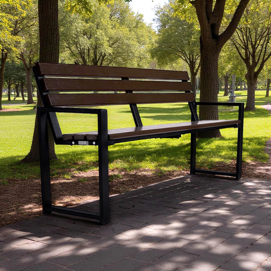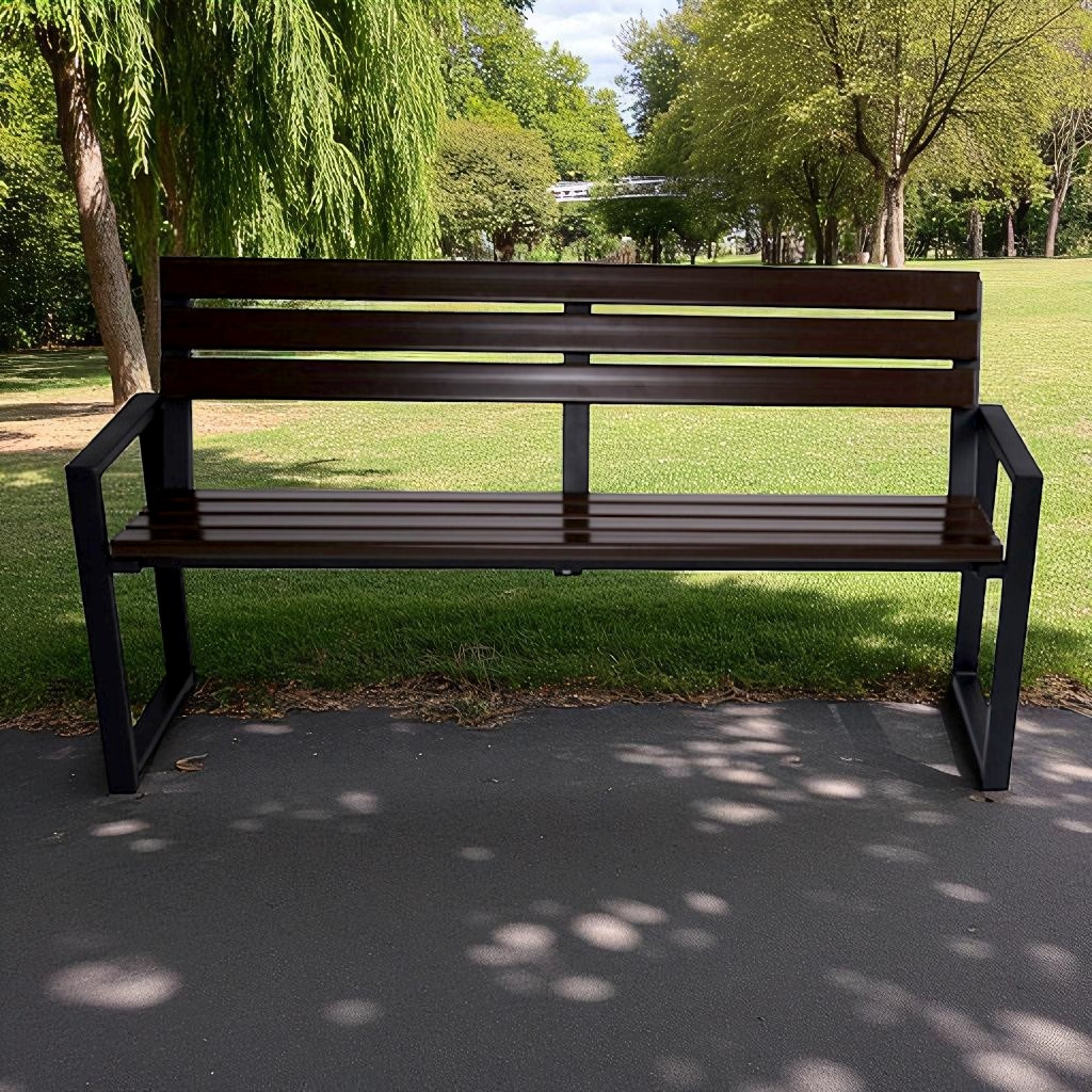 Лавка «Модерн Люкс» зі спинкою та підлокітниками - ідеальна для саду, дачі чи громадського простору. Сидіння і спинка з високоякісного ПВХ стійкі до сонця, вологи та не потребують догляду. Металевий каркас гарантує міцність і довговічність, порошкове фарбування захищає від корозії.