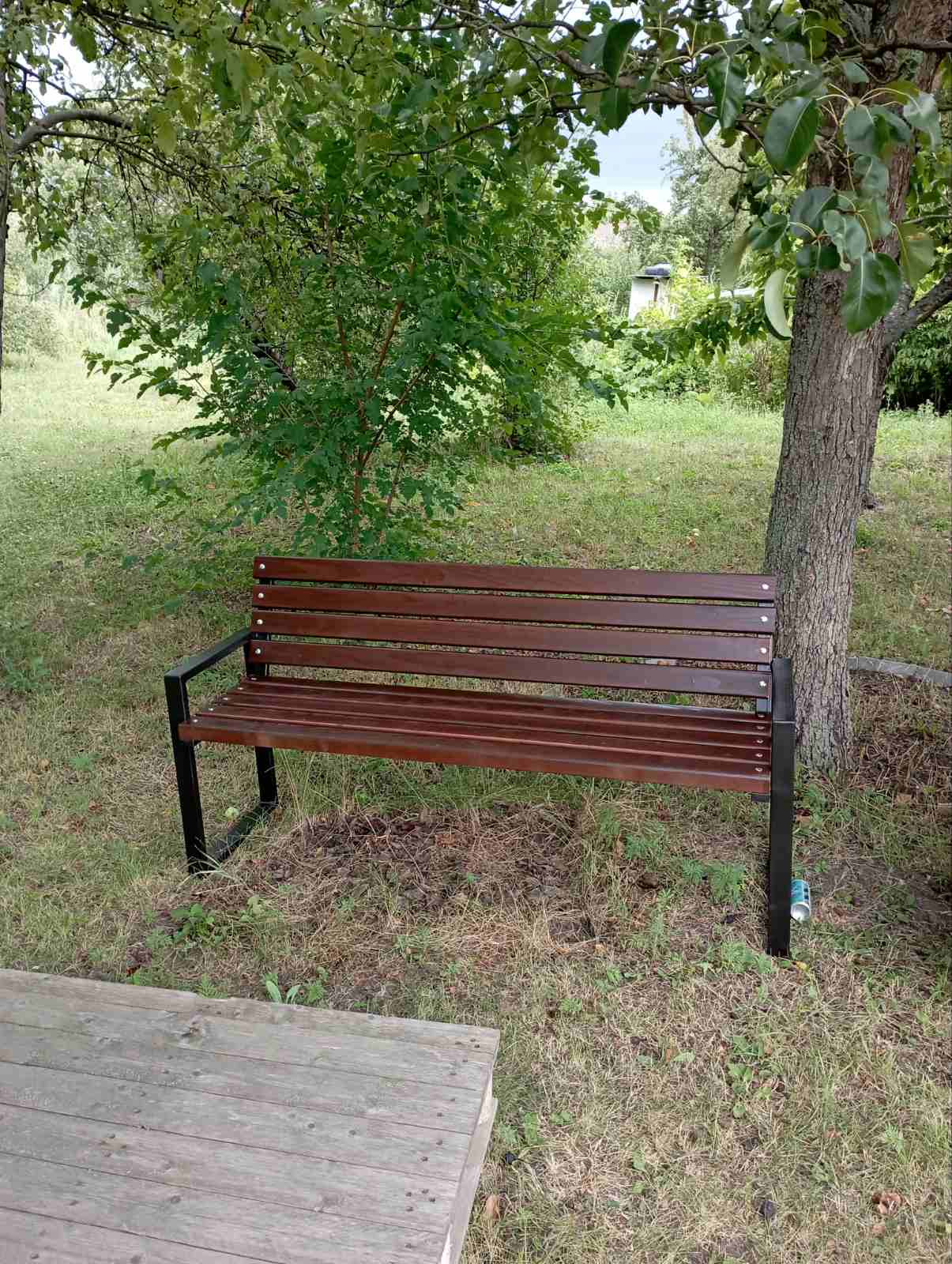 Основа лавки - міцний металевий профіль товщиною 1,8-2 мм. Розмір профілю 50х25 мм. Метал покритий чорною молотковою фарбою у 2-3 шари.