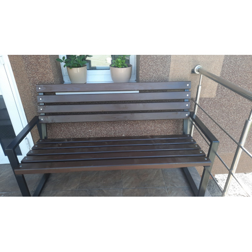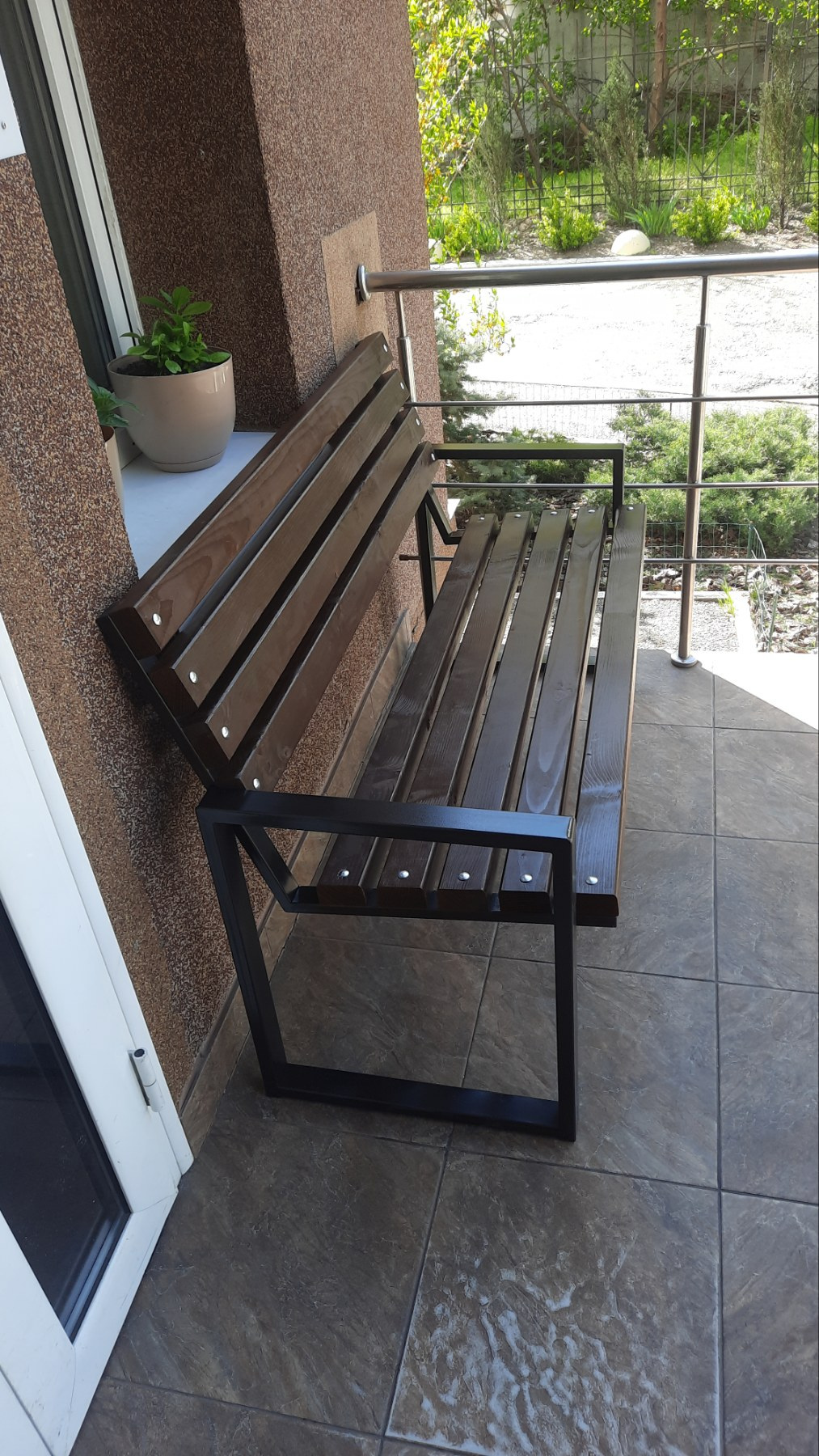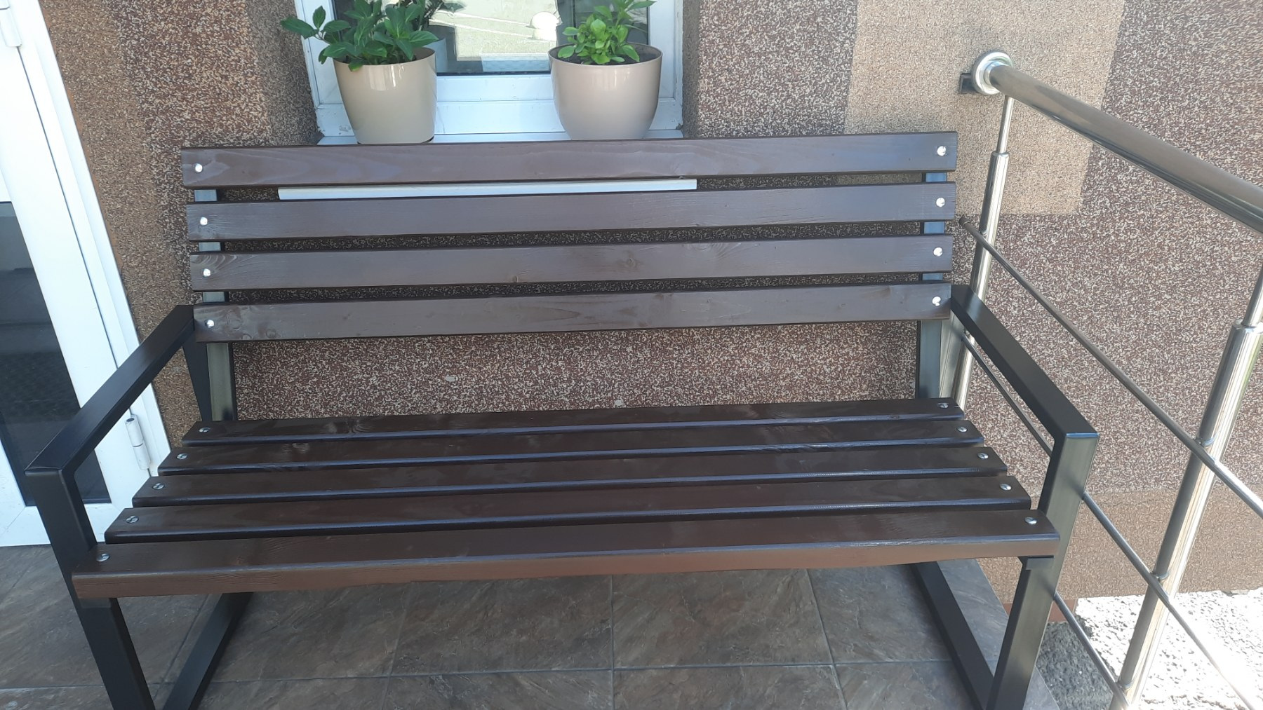 Основа лавки - міцний металевий профіль товщиною 1,8-2 мм. Розмір профілю 50х25 мм. Метал покритий чорною молотковою фарбою у 2-3 шари.