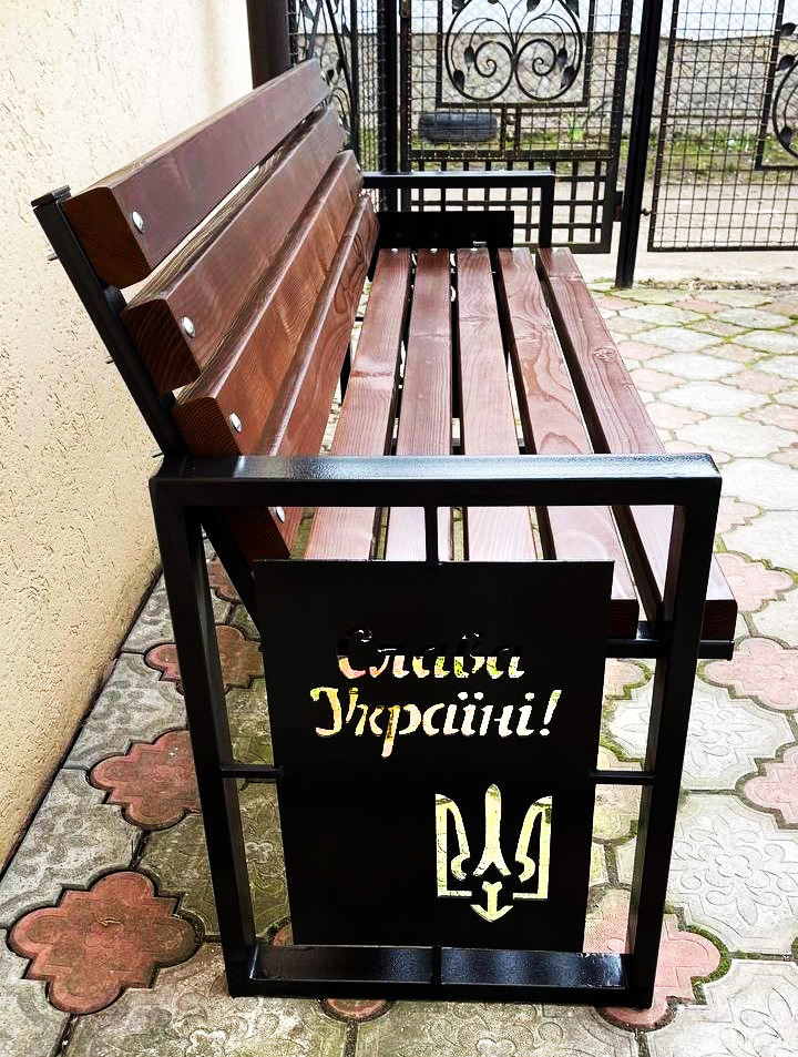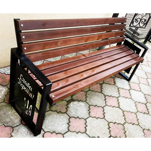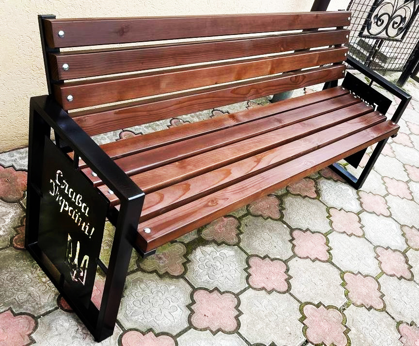 Основа лавки - міцний металевий профіль товщиною 1,8-2 мм. Розмір профілю 50х25 мм. Метал покритий чорною молотковою фарбою у 2-3 шари.