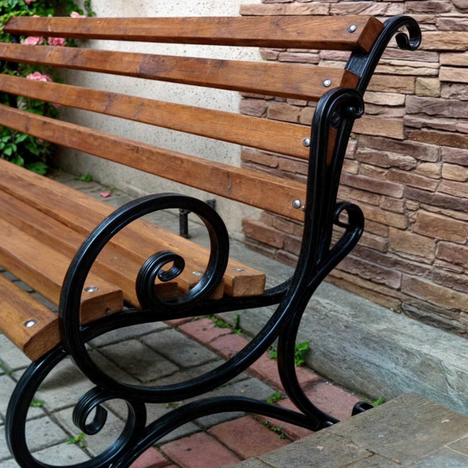 Зручність: ергономічна форма лавки та ковані підлокітники забезпечать максимально комфортний і приємний відпочинок.