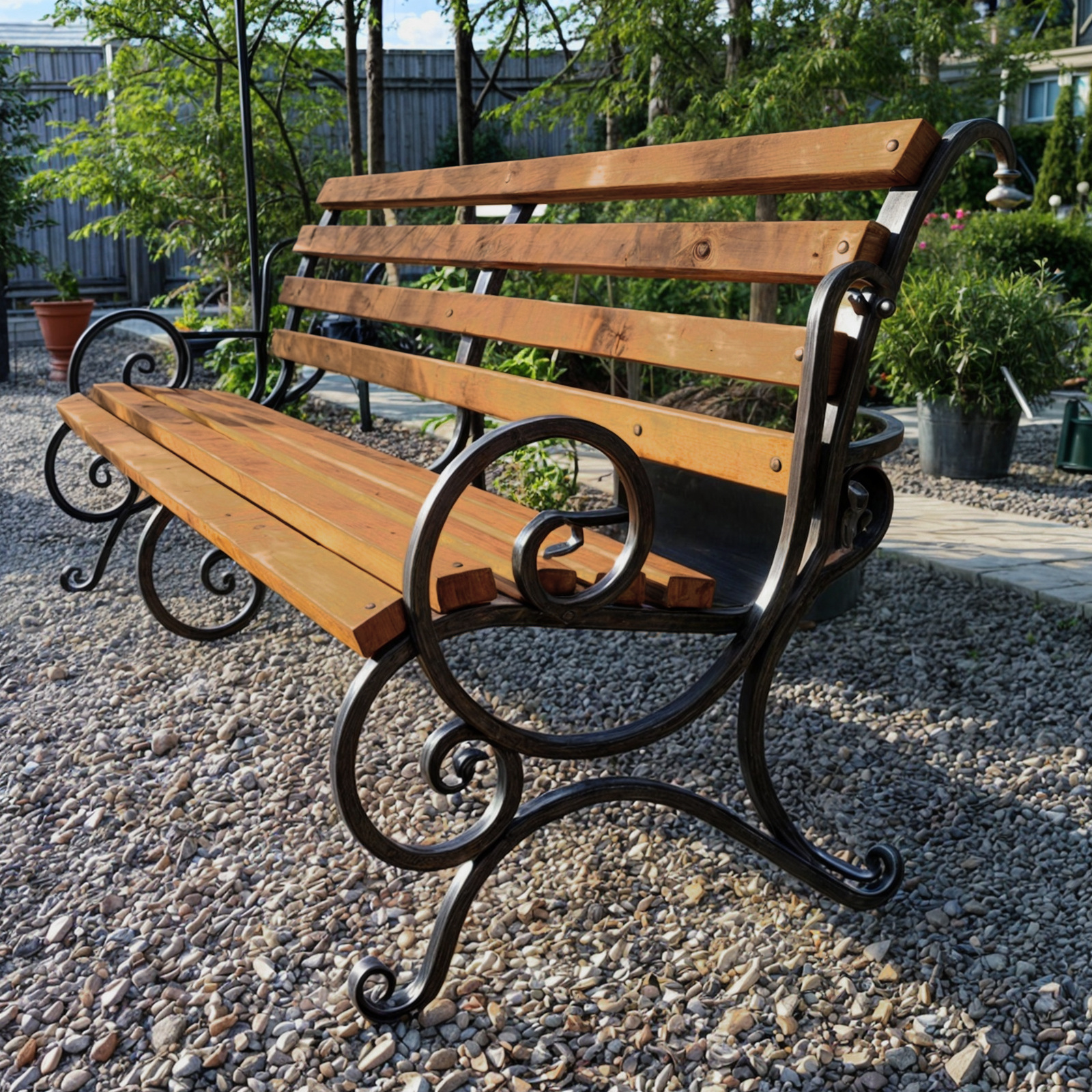 Зручність: ергономічна форма лавки та ковані підлокітники забезпечать максимально комфортний і приємний відпочинок.